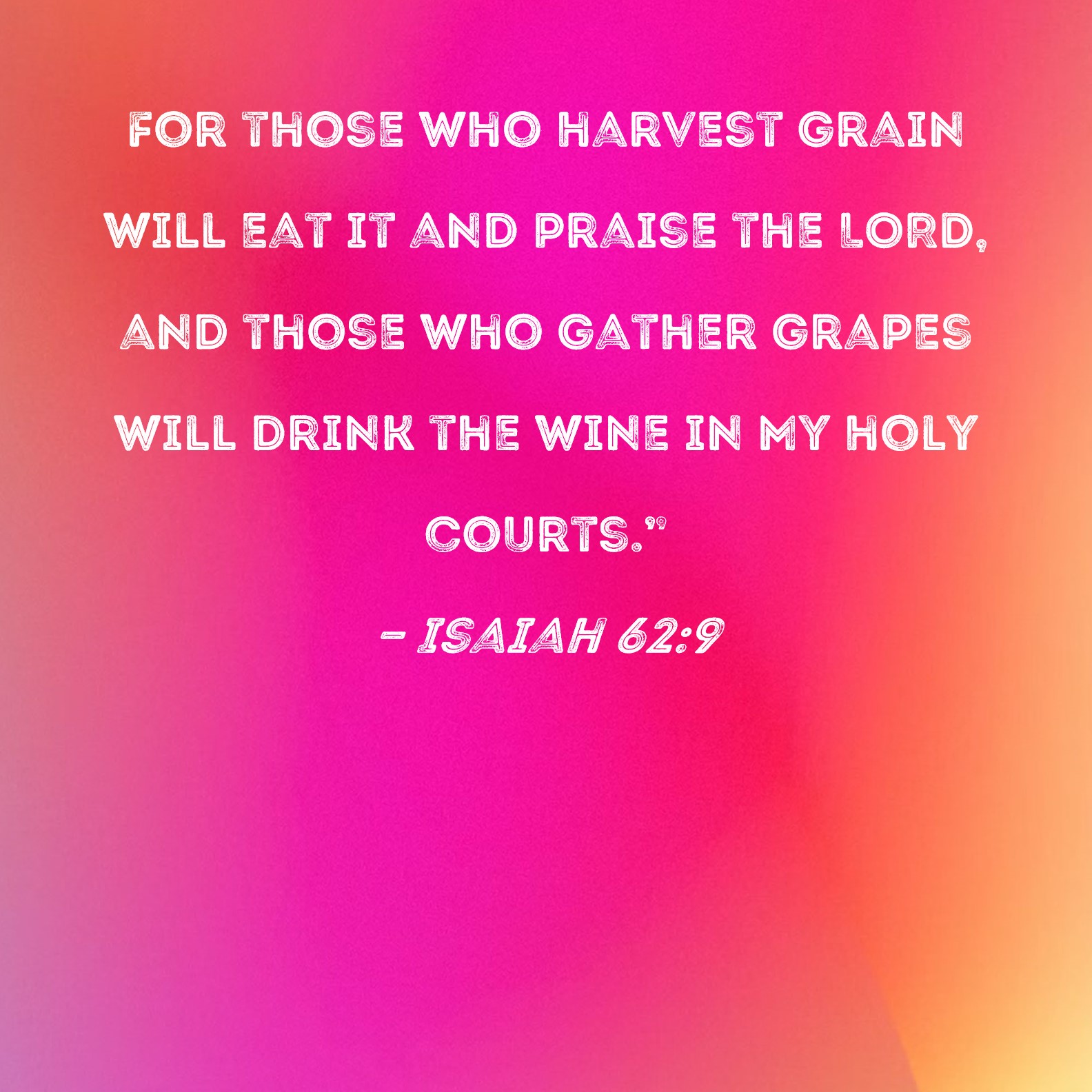 Isaiah 62:9 For those who harvest grain will eat it and praise the LORD, and those who gather grapes will drink the wine in My holy courts."