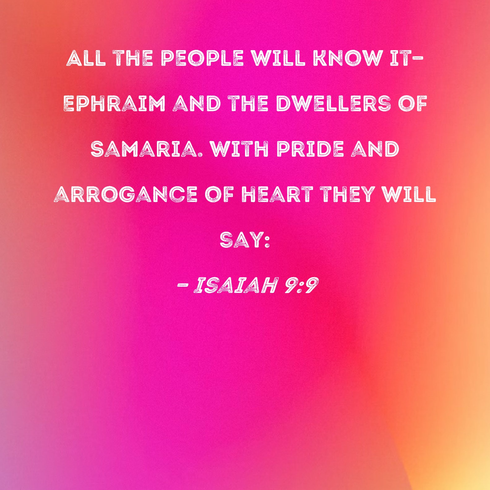 Isaiah 9:9 All the people will know it--Ephraim and the dwellers of Samaria. With pride and arrogance of heart they will say: