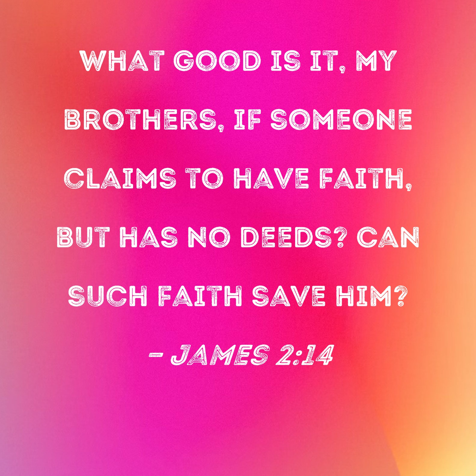 James 2:14 What good is it, my brothers, if someone claims to have faith, but has no deeds? Can such faith save him?