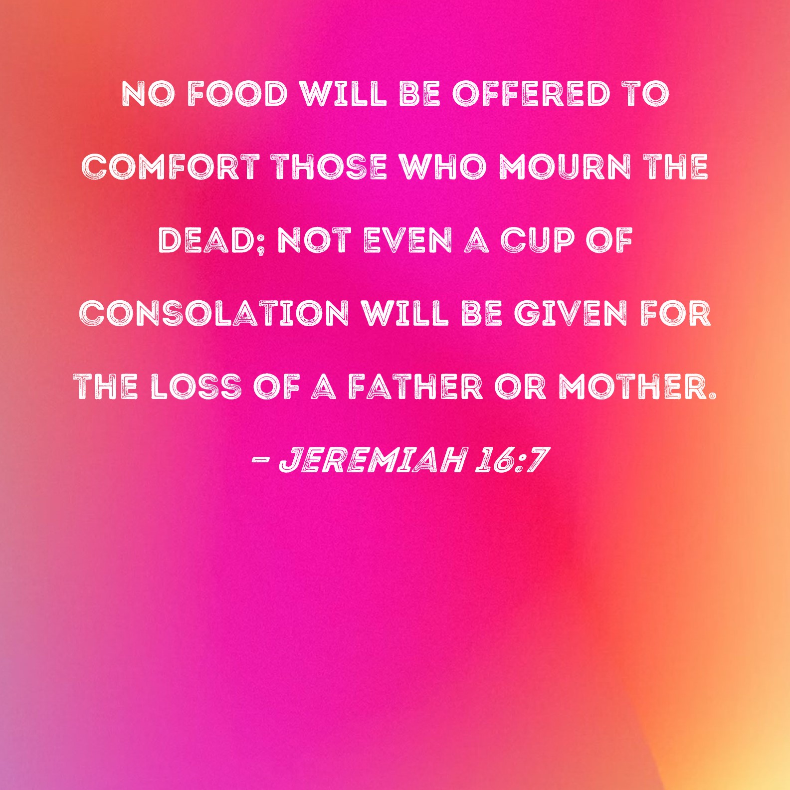 Jeremiah 16:7 No food will be offered to comfort those who mourn the dead; not even a cup of consolation will be given for the loss of a father or mother.