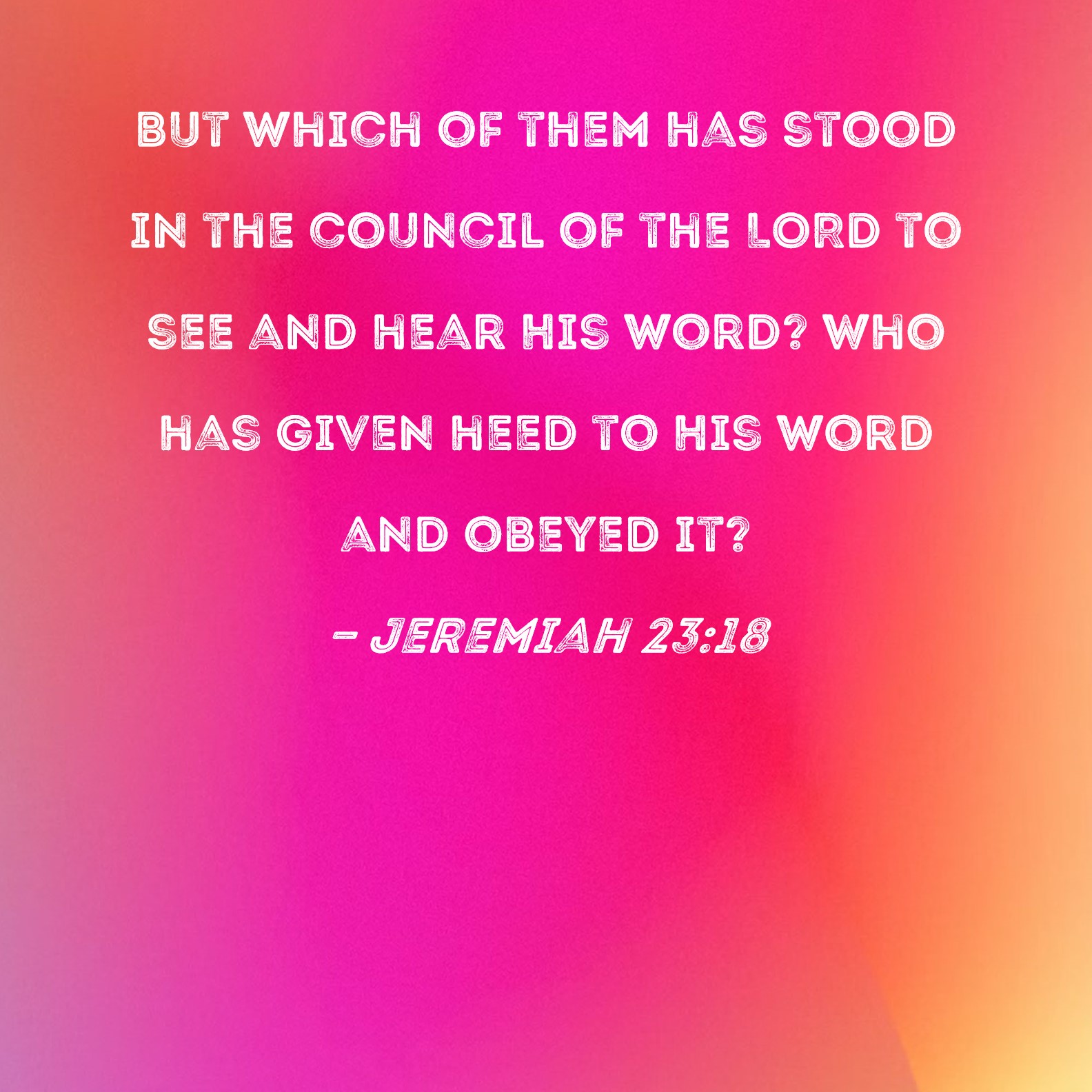 Jeremiah 23:18 But which of them has stood in the council of the LORD to see and hear His word? Who has given heed to His word and obeyed it?