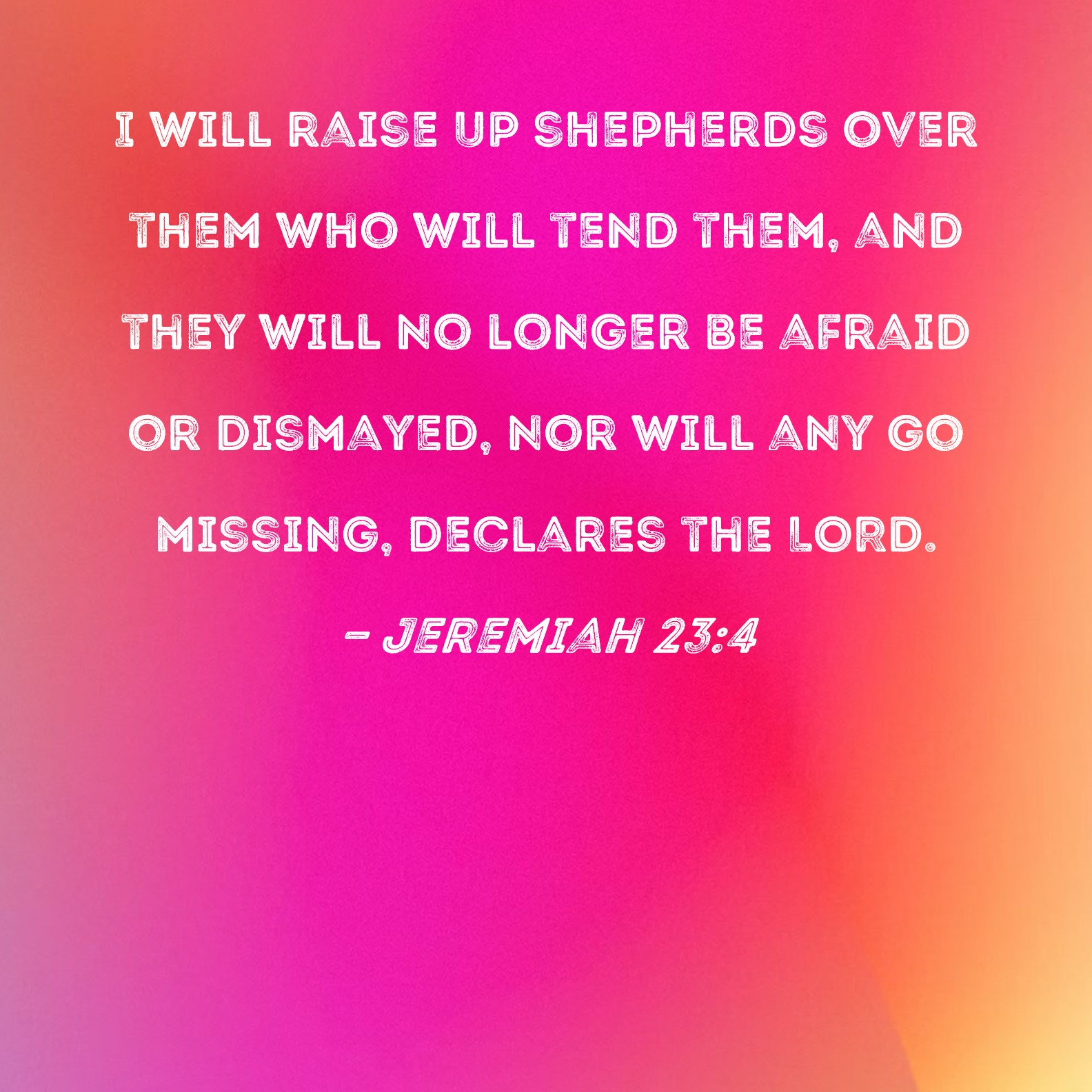 Jeremiah 23:4 I will raise up shepherds over them who will tend them, and they will no longer be afraid or dismayed, nor will any go missing, declares the LORD.