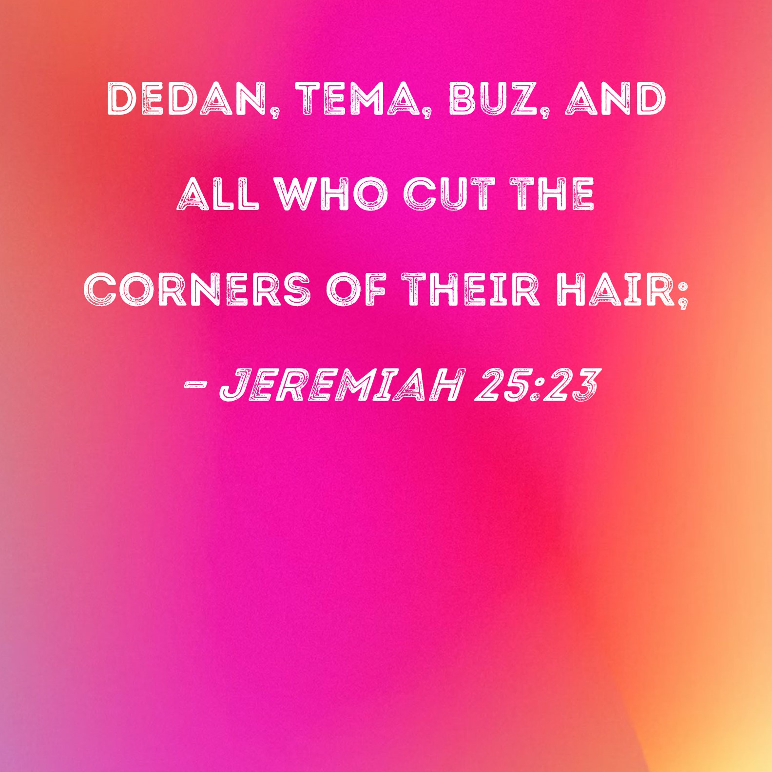Jeremiah 25:23 Dedan, Tema, Buz, and all who cut the corners of their hair;