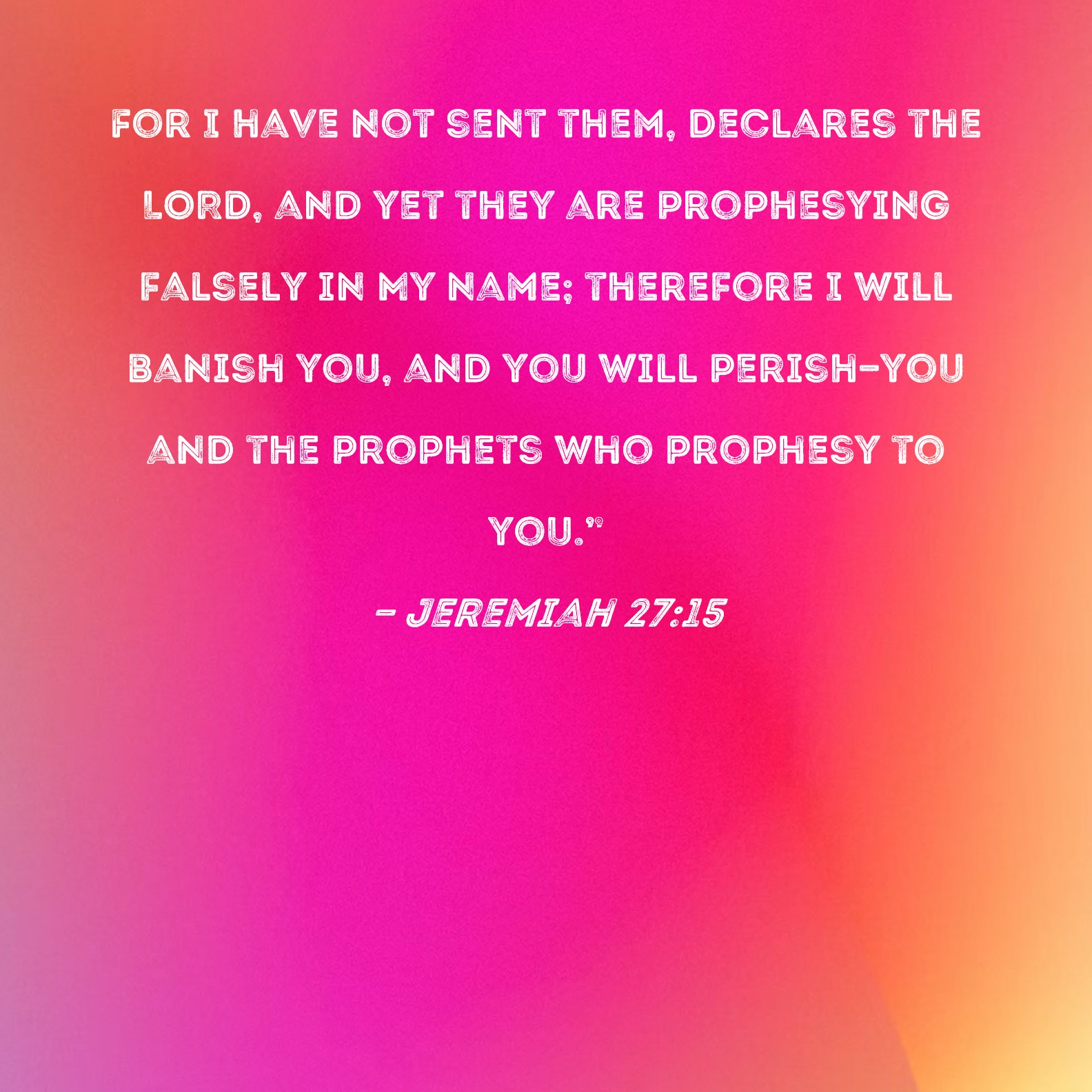 Jeremiah 27:15 For I have not sent them, declares the LORD, and yet they are prophesying falsely in My name; therefore I will banish you, and you will perish--you and the prophets who prophesy to you."