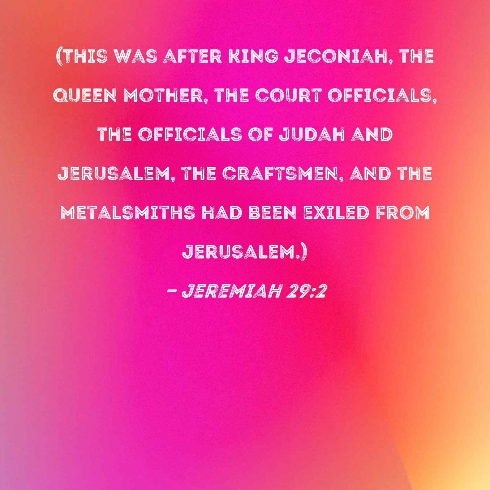 Jeremiah 29:2 (This was after King Jeconiah, the queen mother, the court officials, the officials of Judah and Jerusalem, the craftsmen, and the metalsmiths had been exiled from Jerusalem.)