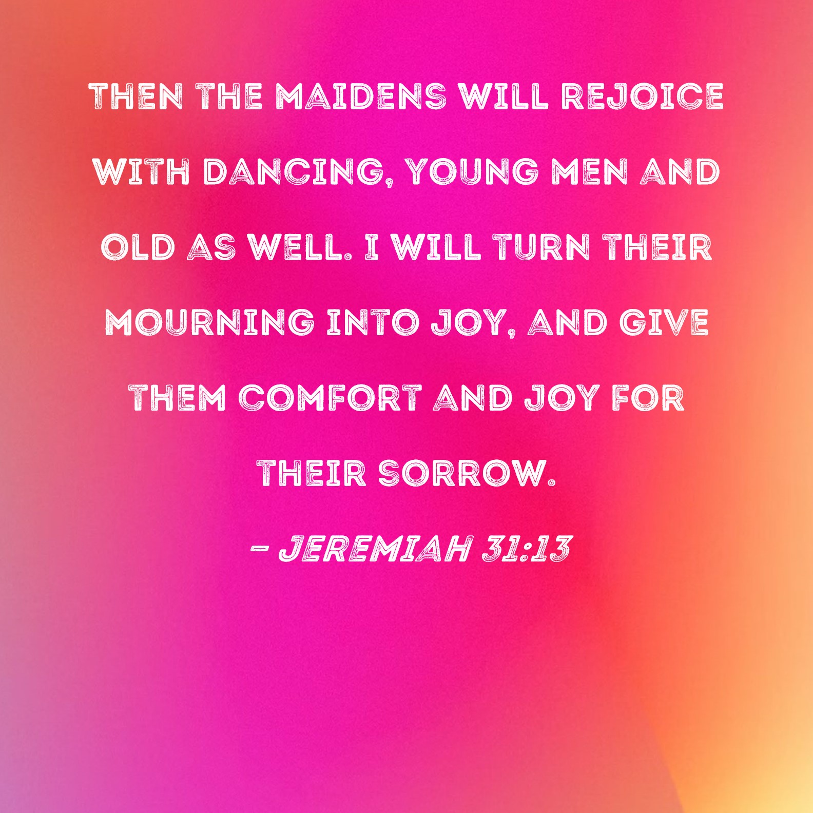KJV:  Then shall the virgin rejoice in the dance, both young men and old together: for I will turn their mourning into joy, and will comfort them, and make them rejoice from their sorrow.
