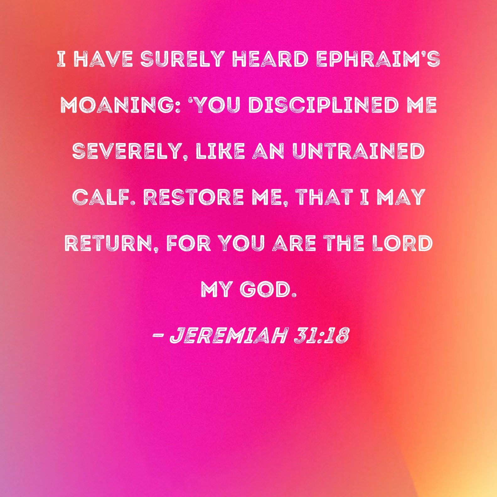 Jeremiah 31:18 I have surely heard Ephraim's moaning: 'You disciplined me severely, like an untrained calf. Restore me, that I may return, for You are the LORD my God.