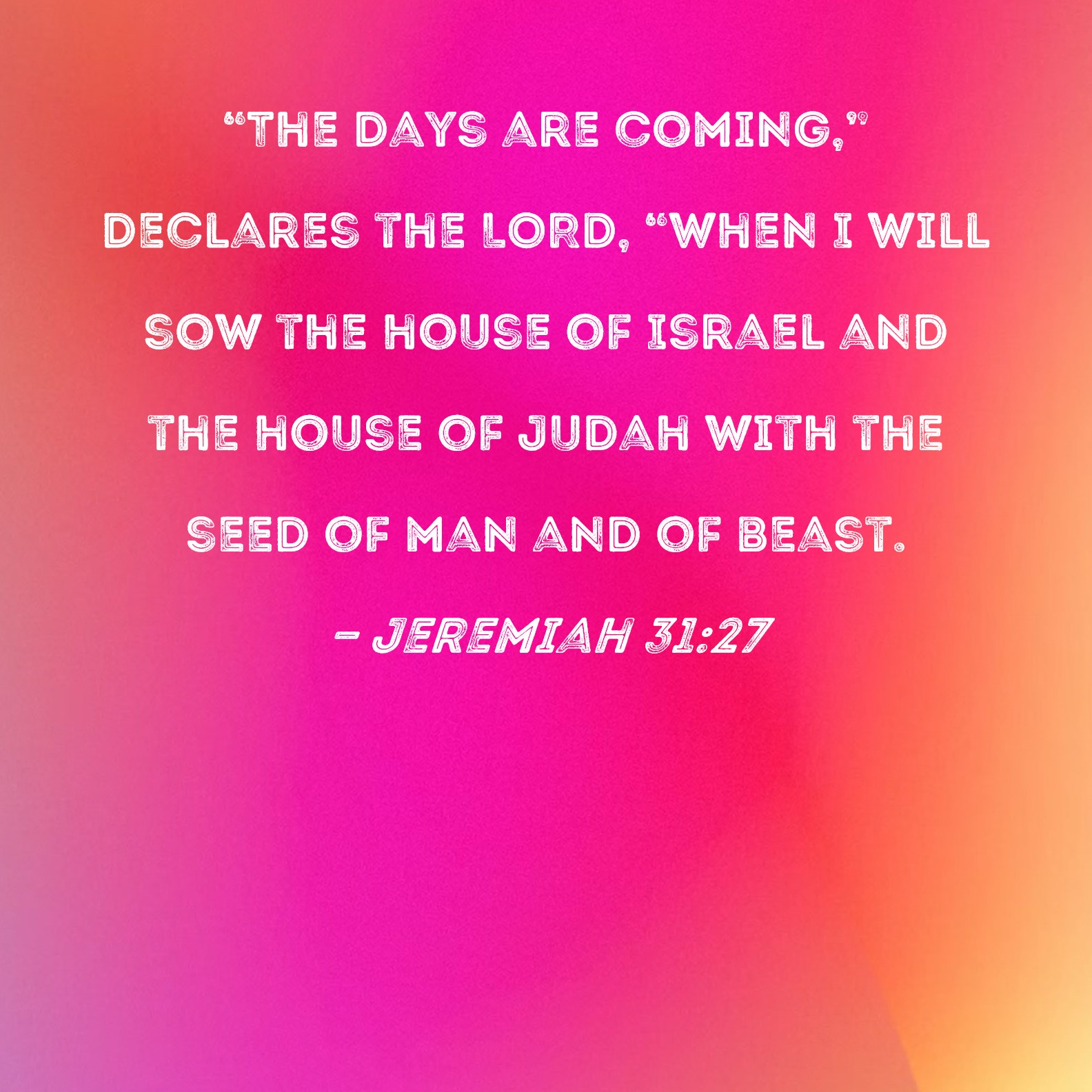 Jeremiah 31:27 "The days are coming," declares the LORD, "when I will sow the house of Israel and the house of Judah with the seed of man and of beast.