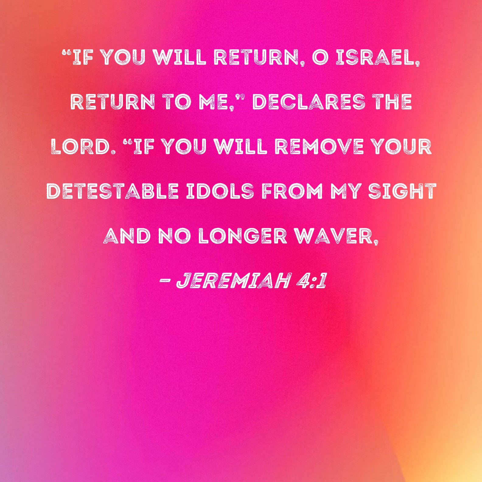 Jeremiah 4:1 "If you will return, O Israel, return to Me," declares the LORD. "If you will remove your detestable idols from My sight and no longer waver,