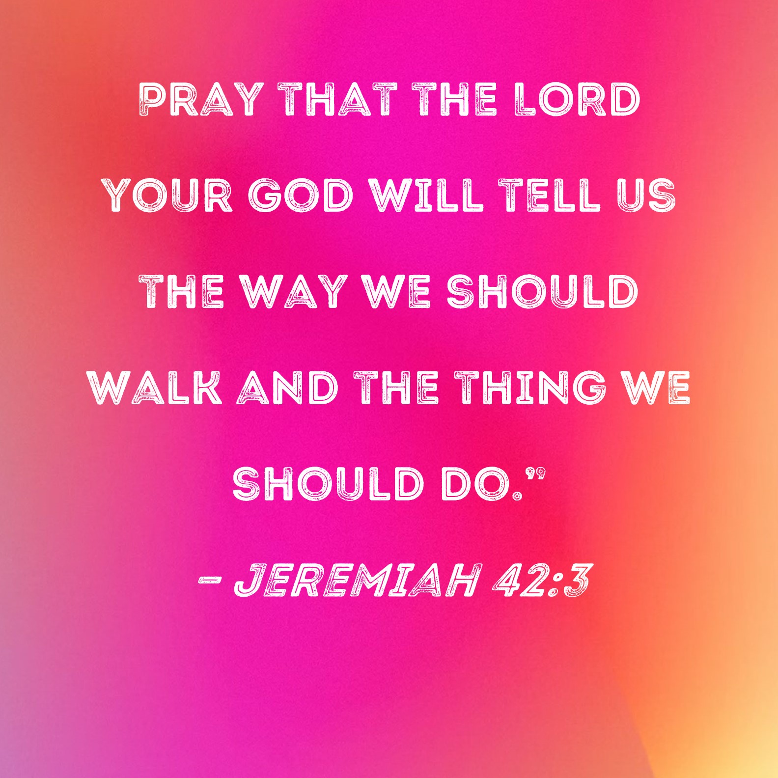 Jeremiah 42:3 Pray that the LORD your God will tell us the way we should walk and the thing we should do."