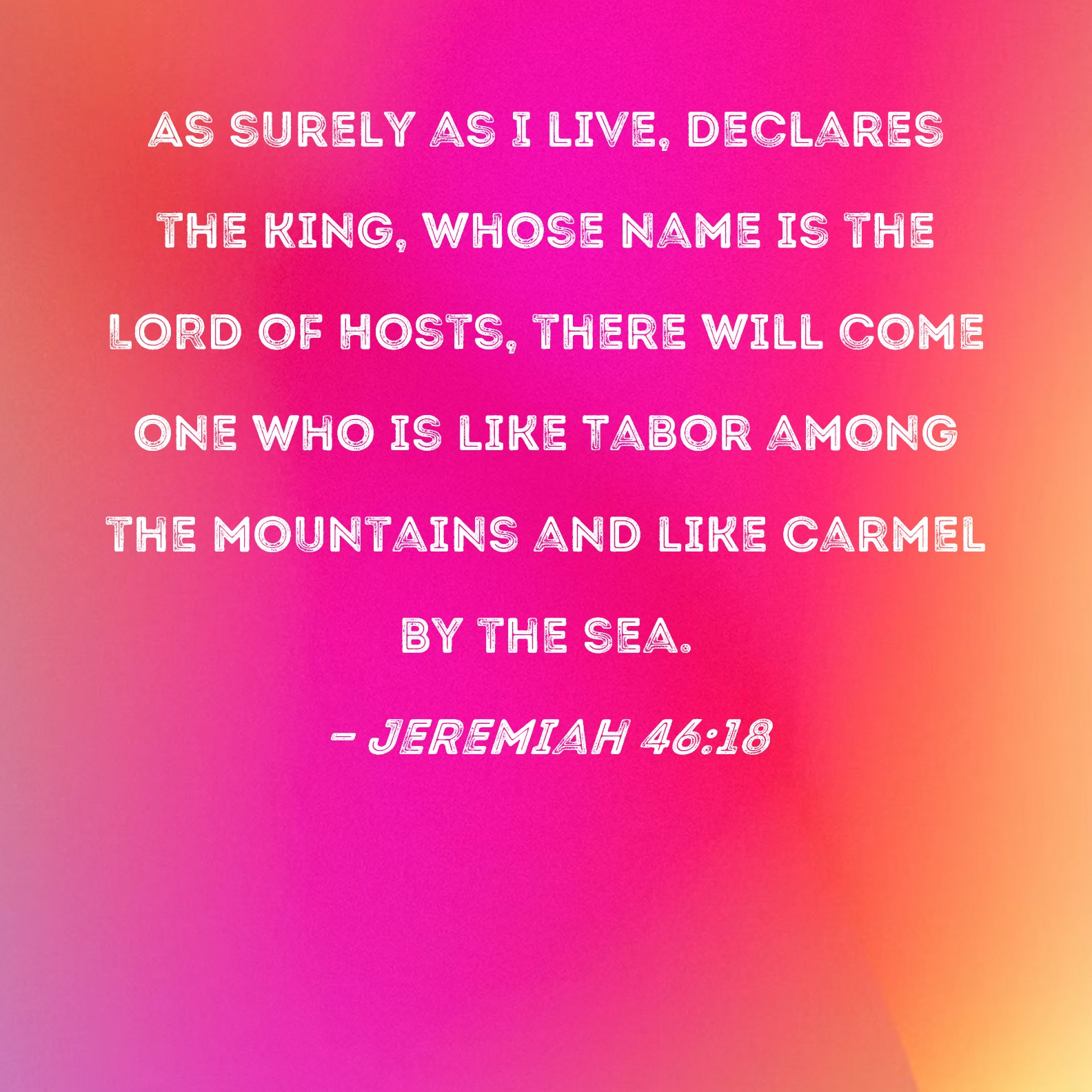 Jeremiah 46:18 As surely as I live, declares the King, whose name is the LORD of Hosts, there will come one who is like Tabor among the mountains and like Carmel by the sea.