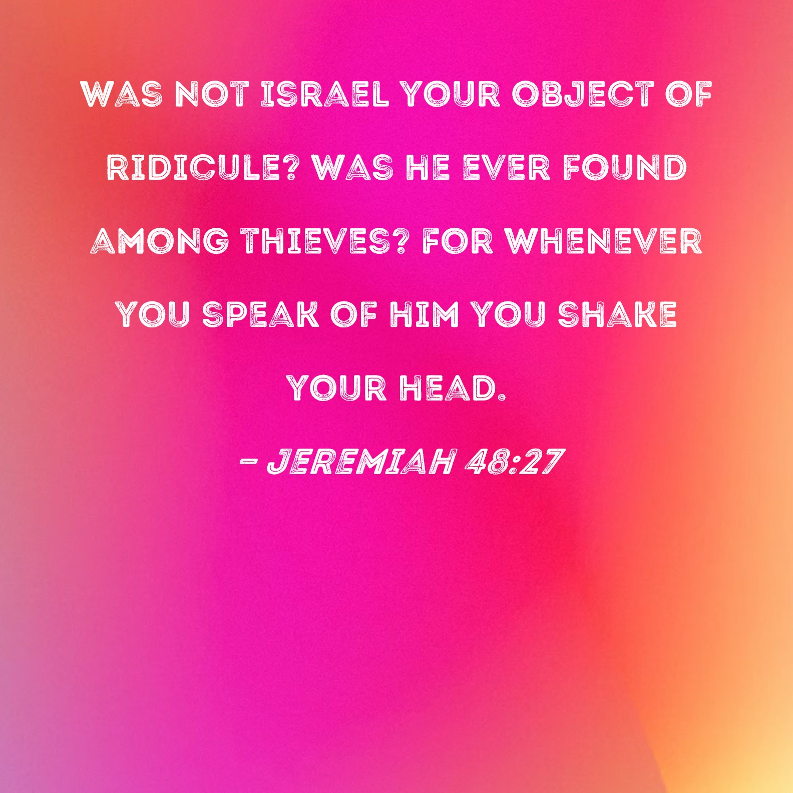 Jeremiah 48:27 Was not Israel your object of ridicule? Was he ever found among thieves? For whenever you speak of him you shake your head.