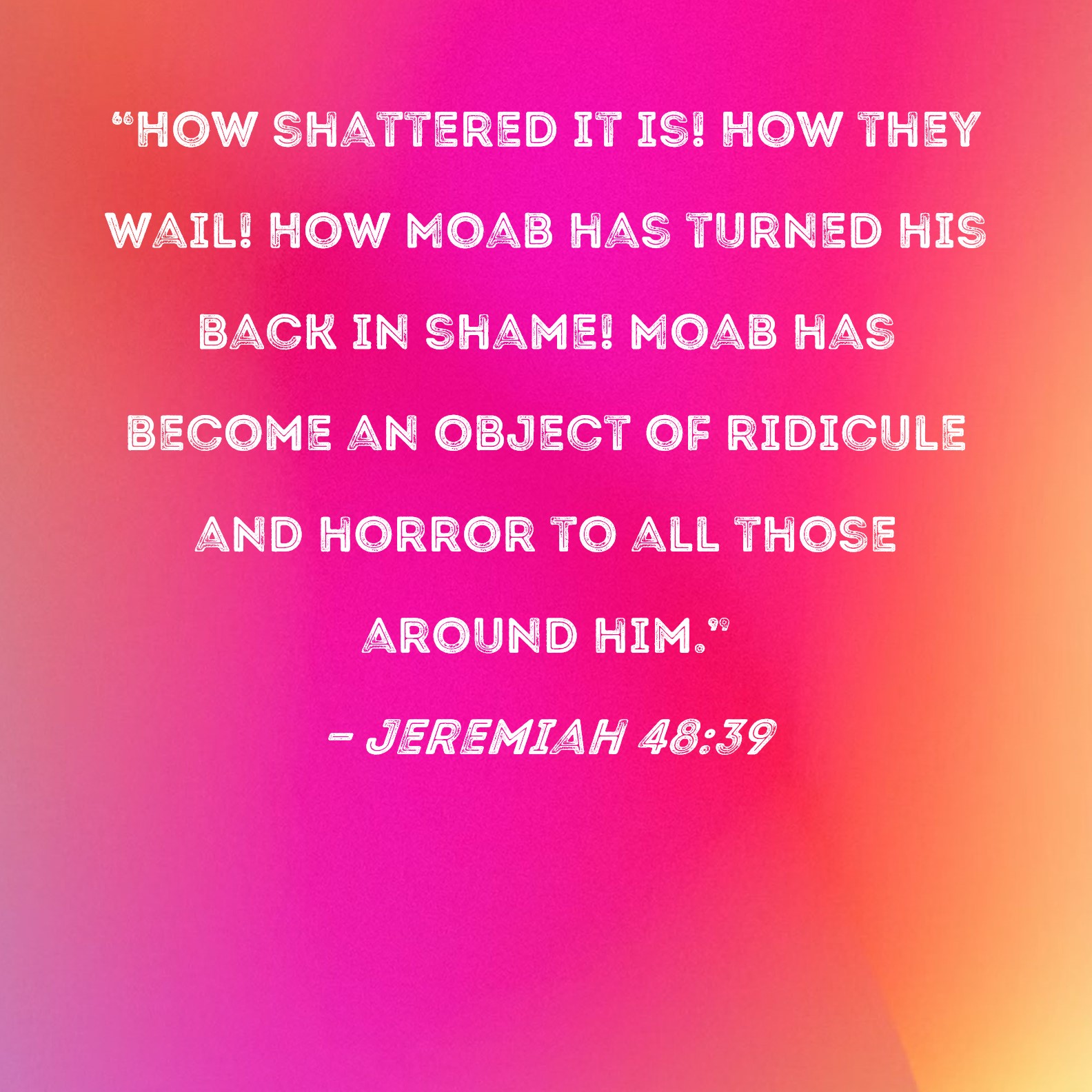 Jeremiah 48:39 "How shattered it is! How they wail! How Moab has turned his back in shame! Moab has become an object of ridicule and horror to all those around him."