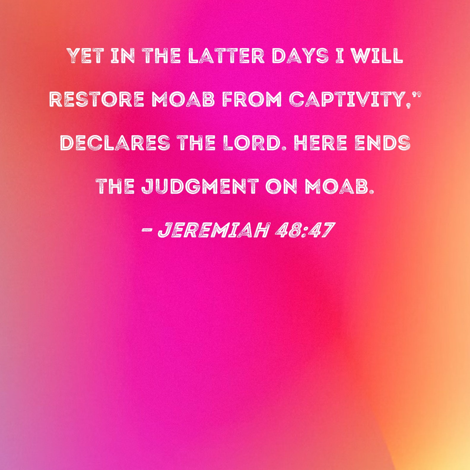 Jeremiah 48:47 Yet in the latter days I will restore Moab from captivity," declares the LORD. Here ends the judgment on Moab.