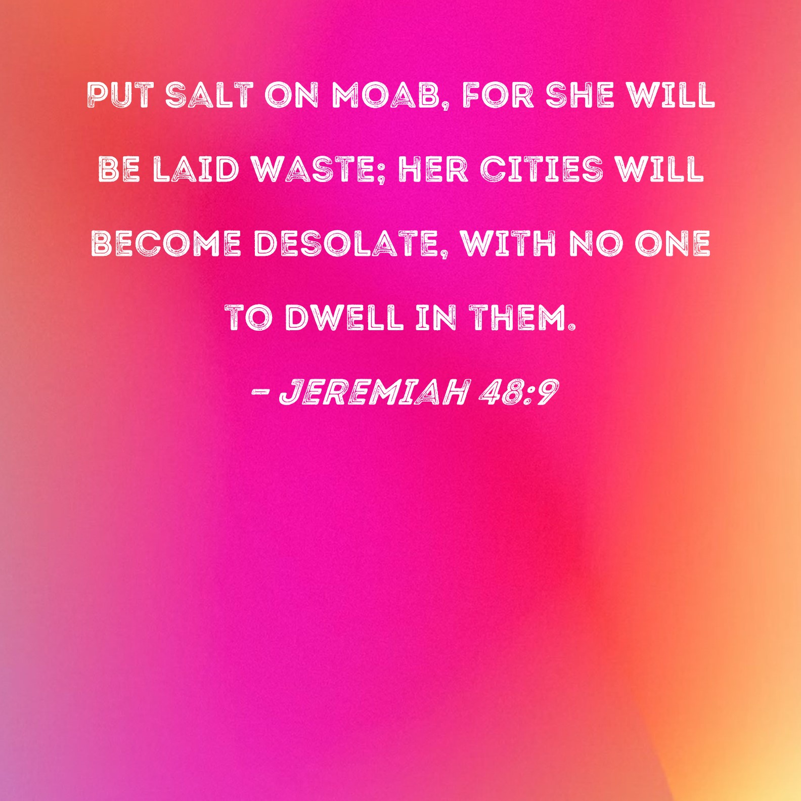 Jeremiah 48:9 Put salt on Moab, for she will be laid waste; her cities will become desolate, with no one to dwell in them.