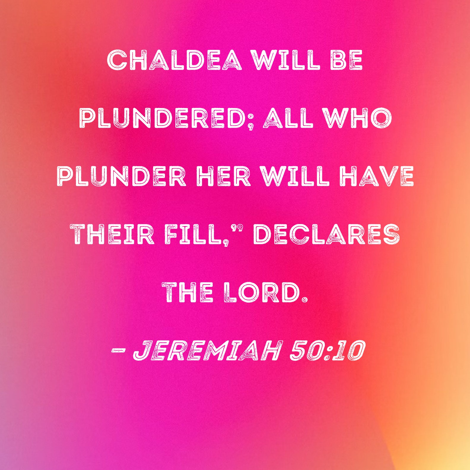 Jeremiah 50:10 Chaldea will be plundered; all who plunder her will have their fill," declares the LORD.