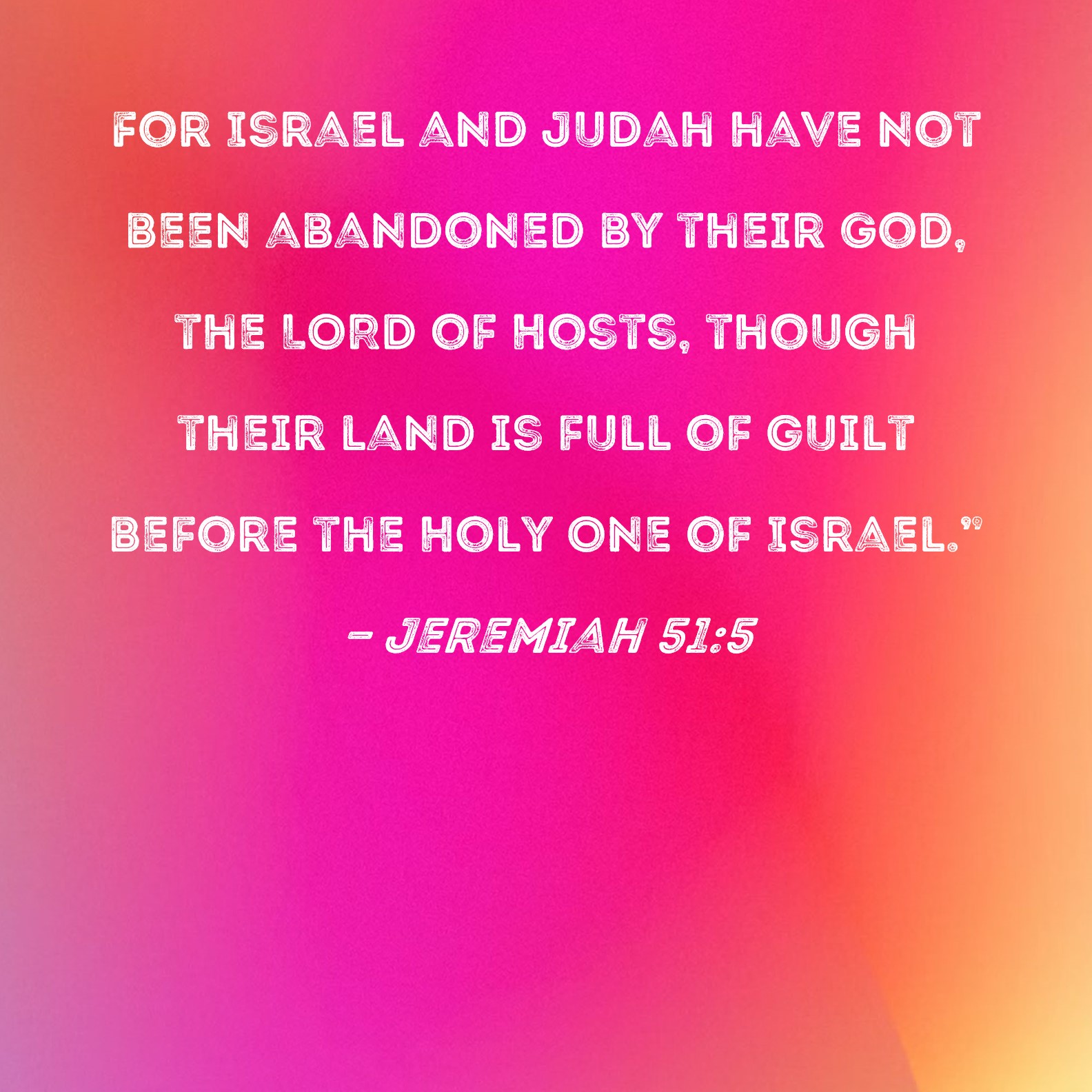 Jeremiah 51:5 For Israel and Judah have not been abandoned by their God, the LORD of Hosts, though their land is full of guilt before the Holy One of Israel."