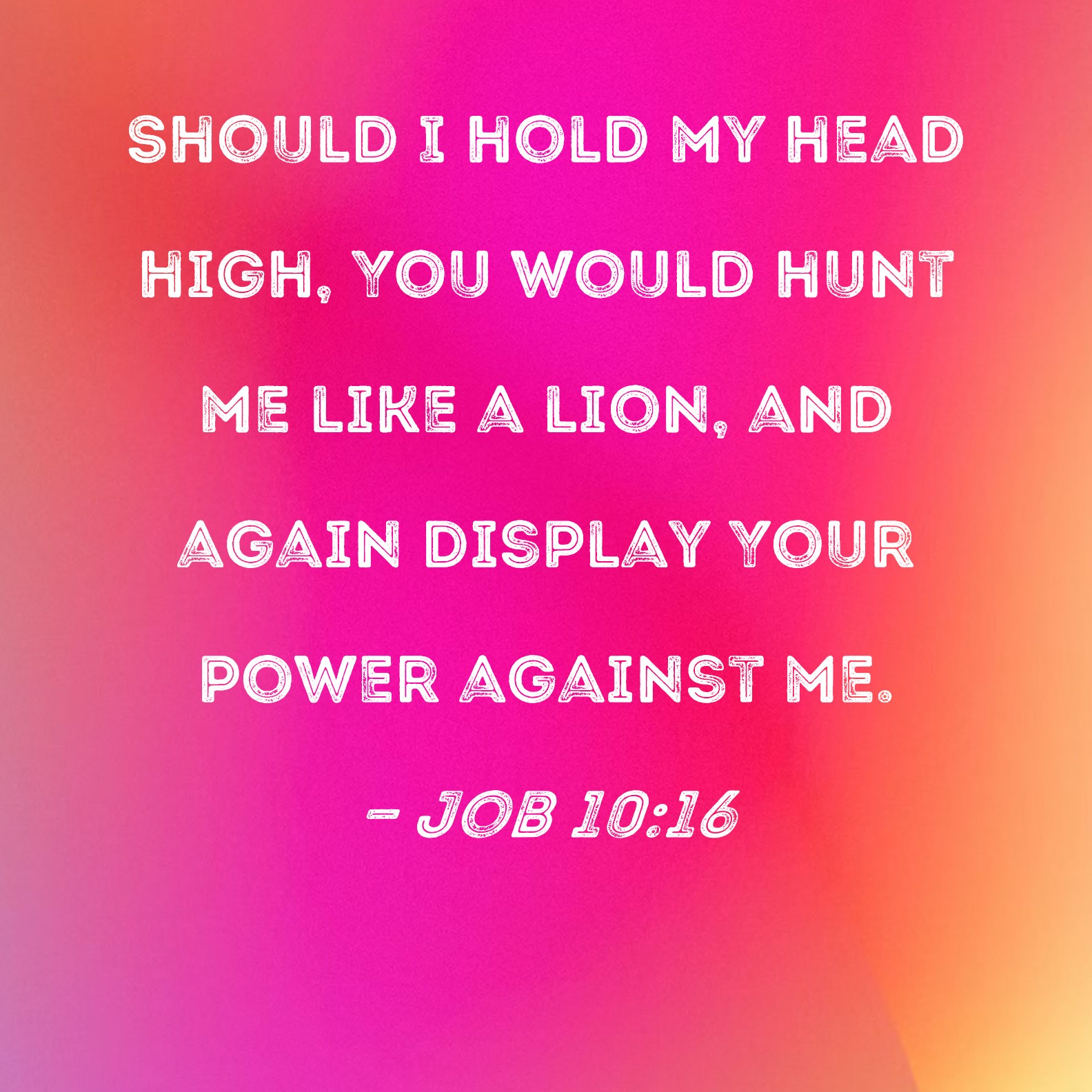 Job 10:16 Should I hold my head high, You would hunt me like a lion, and again display Your power against me.