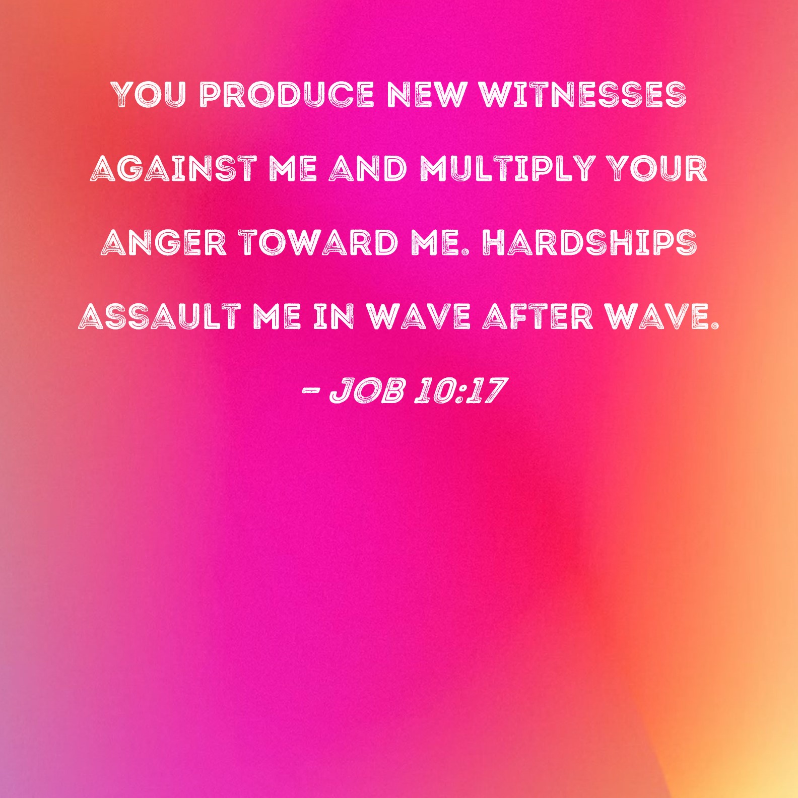 Job 10:17 You produce new witnesses against me and multiply Your anger toward me. Hardships assault me in wave after wave.