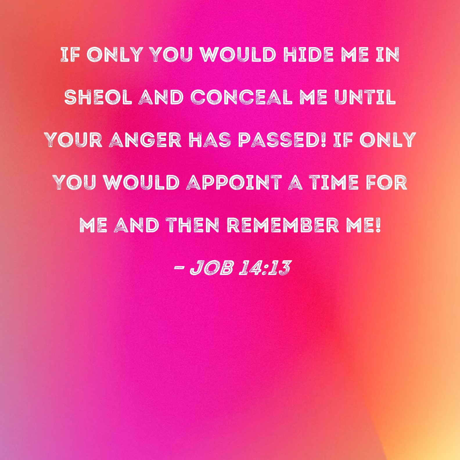Job 14:13 If only You would hide me in Sheol and conceal me until Your anger has passed! If only You would appoint a time for me and then remember me!
