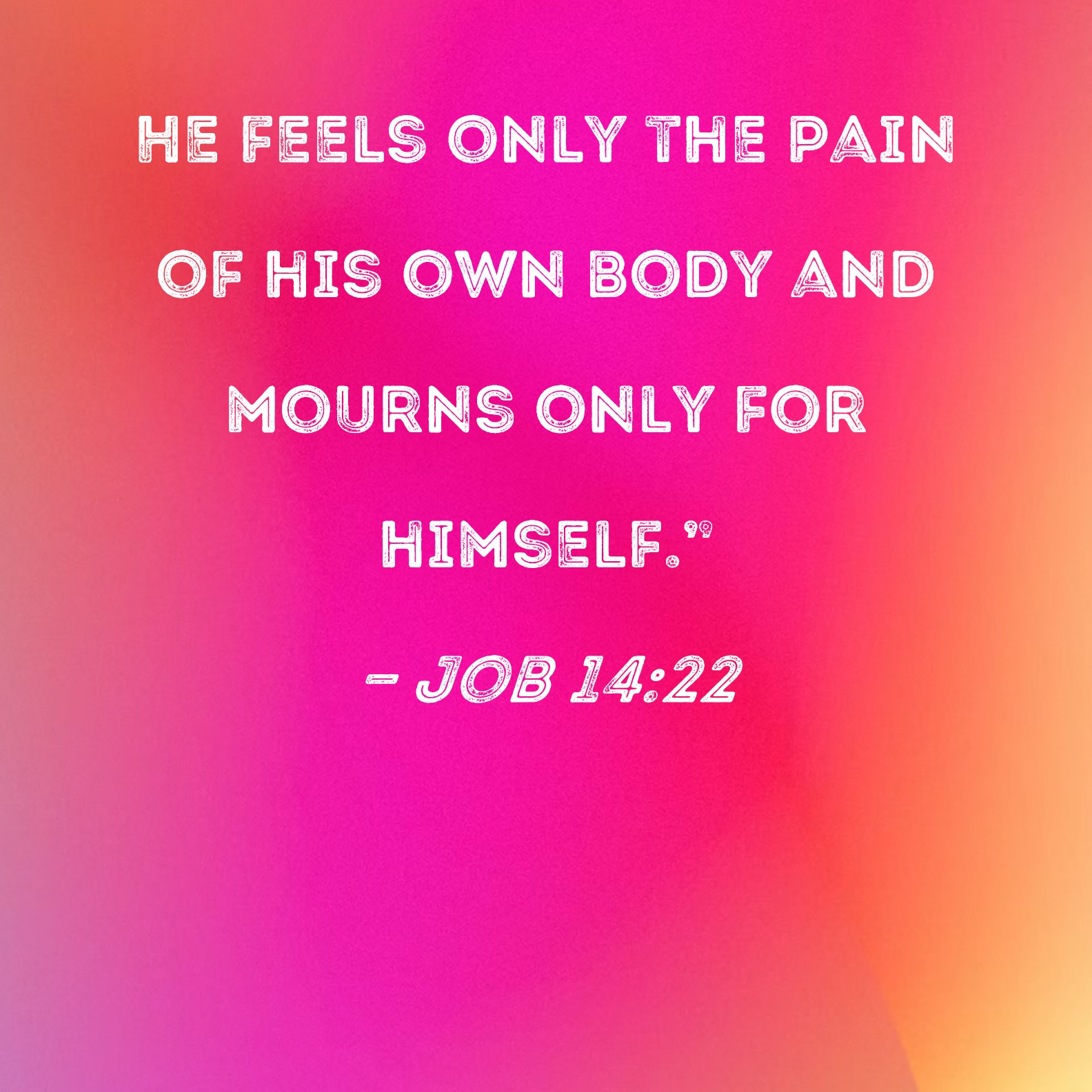Job 14:22 He feels only the pain of his own body and mourns only for himself."