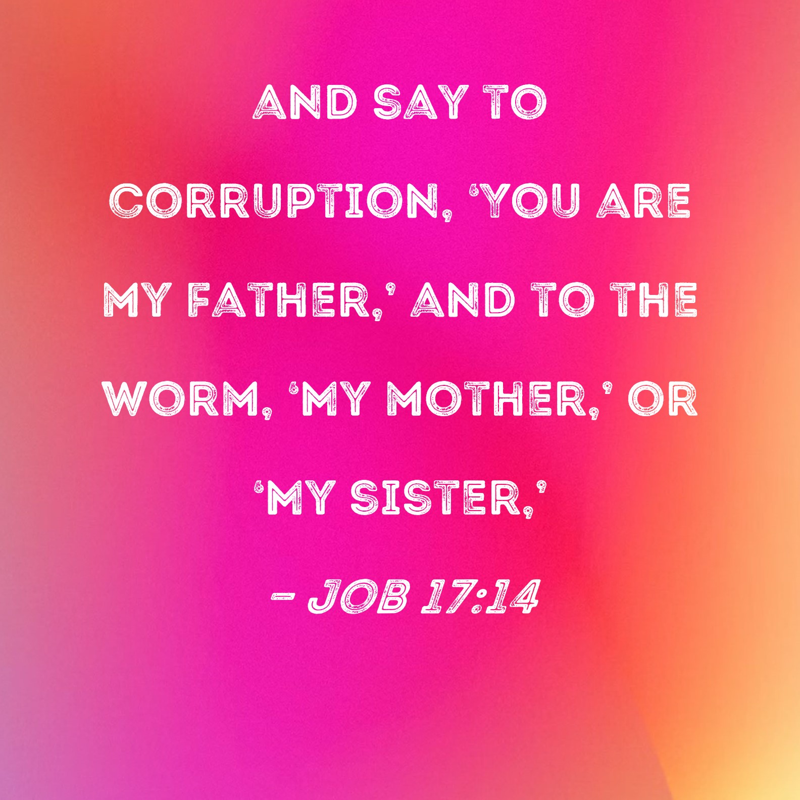 Job 17:14 and say to corruption, 'You are my father,' and to the worm, 'My mother,' or 'My sister,'