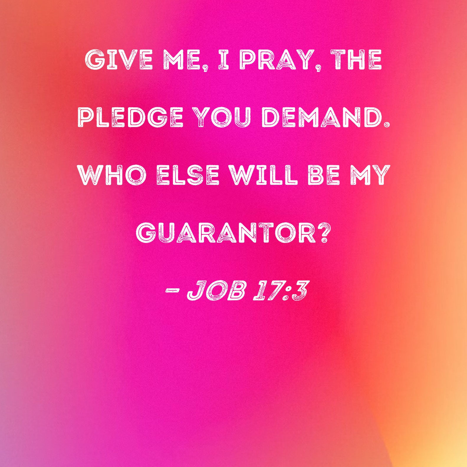 Job 17:3 Give me, I pray, the pledge You demand. Who else will be my guarantor?
