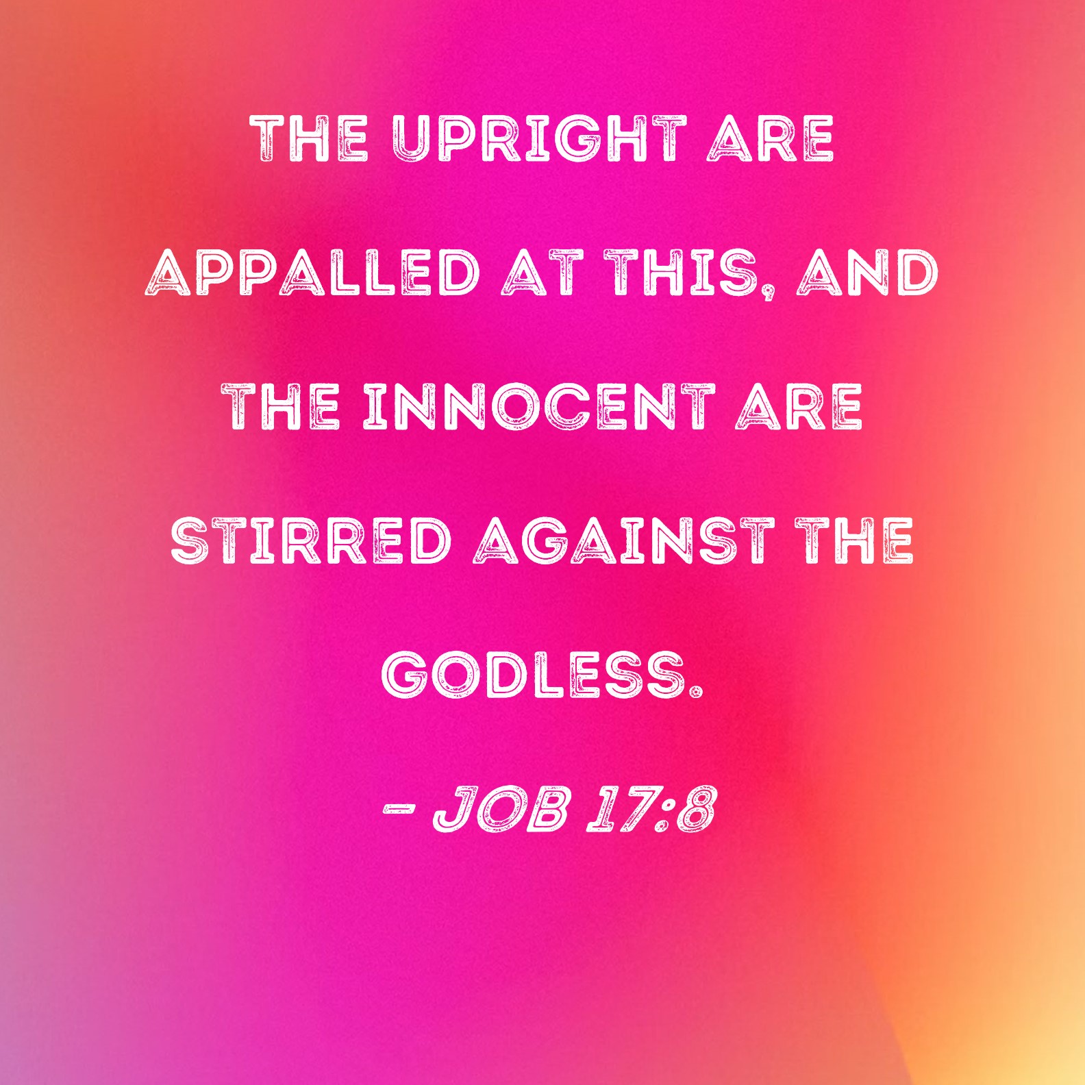 Job 17:8 The upright are appalled at this, and the innocent are stirred against the godless.