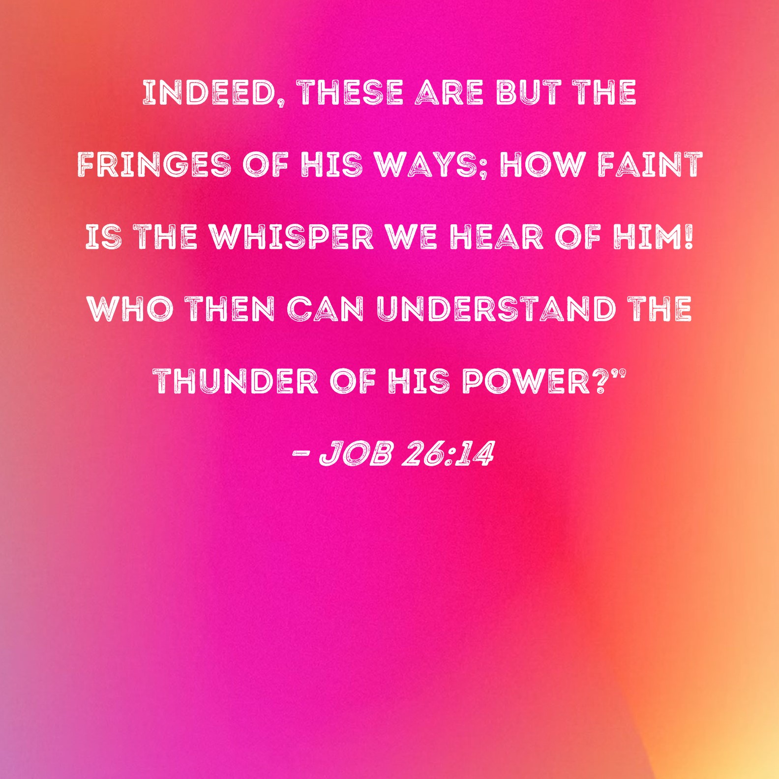 Job 26:14 Indeed, these are but the fringes of His ways; how faint is the whisper we hear of Him! Who then can understand the thunder of His power?"