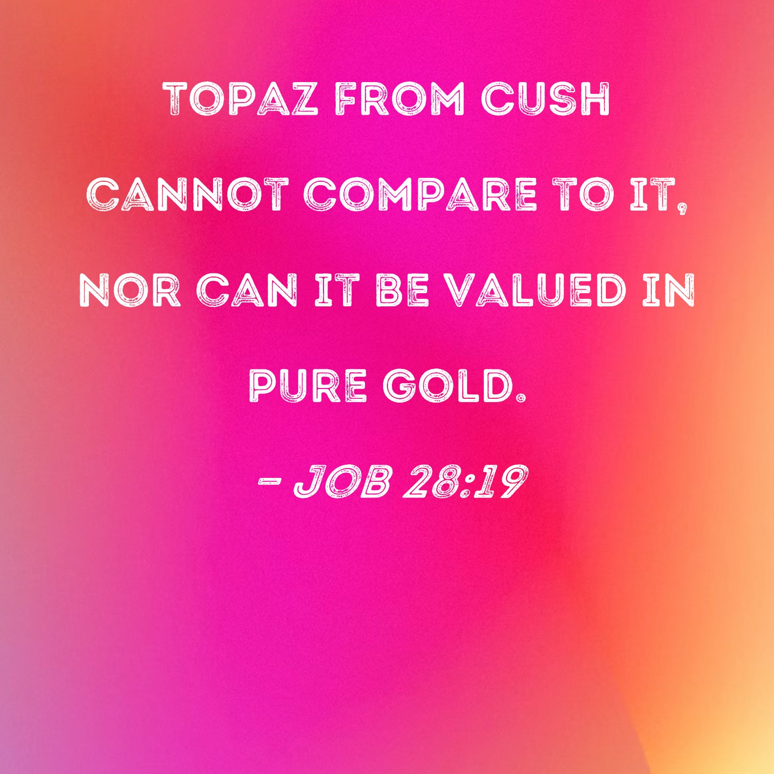 Job 28:19 Topaz from Cush cannot compare to it, nor can it be valued in pure gold.