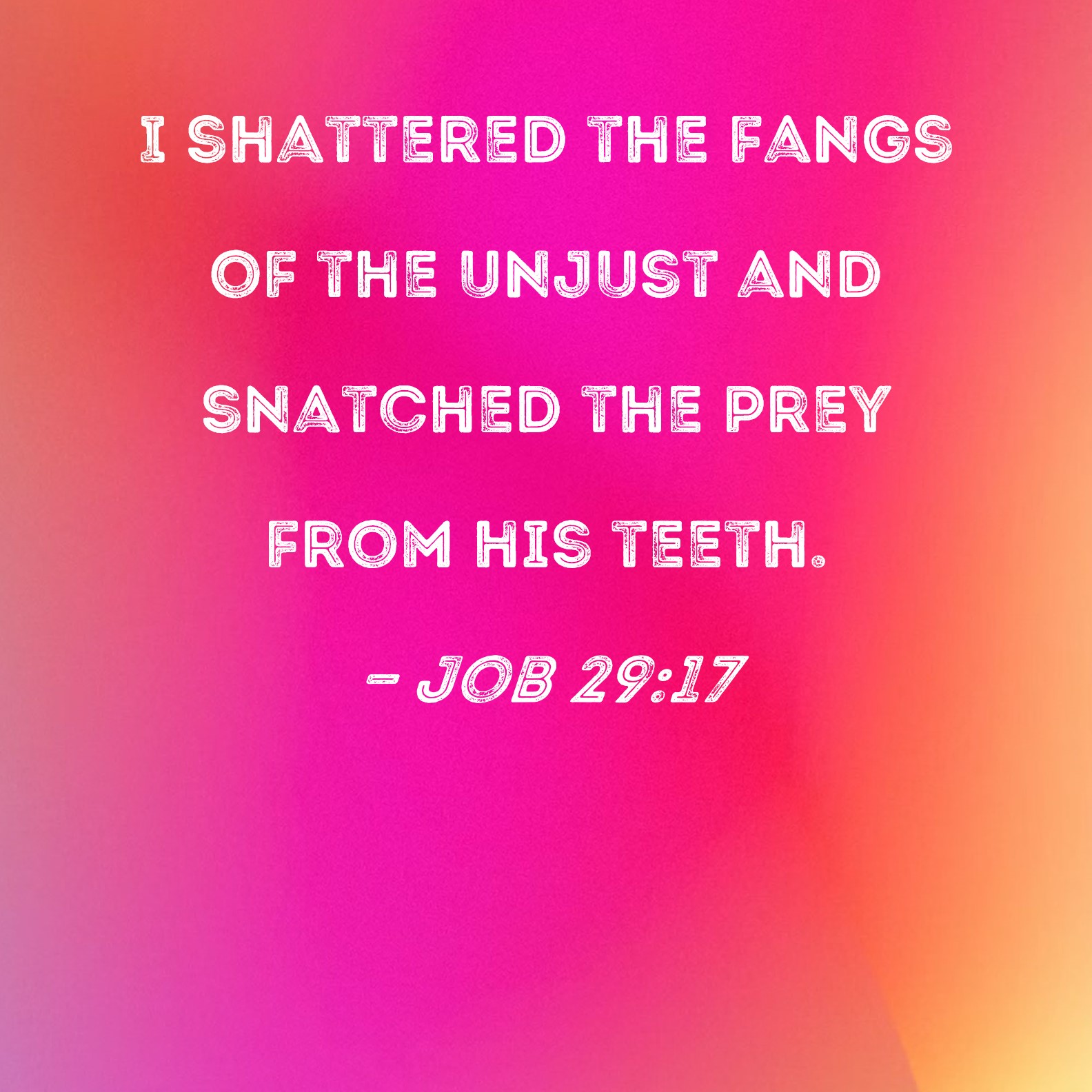 Job 29:17 I shattered the fangs of the unjust and snatched the prey from his teeth.