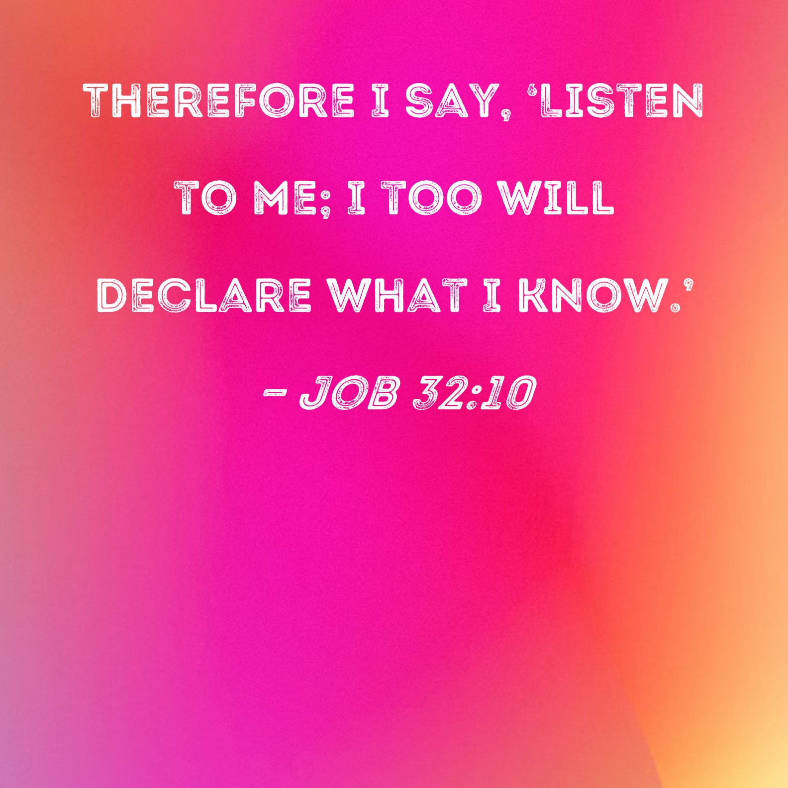 Job 32:10 Therefore I say, 'Listen to me; I too will declare what I know.'