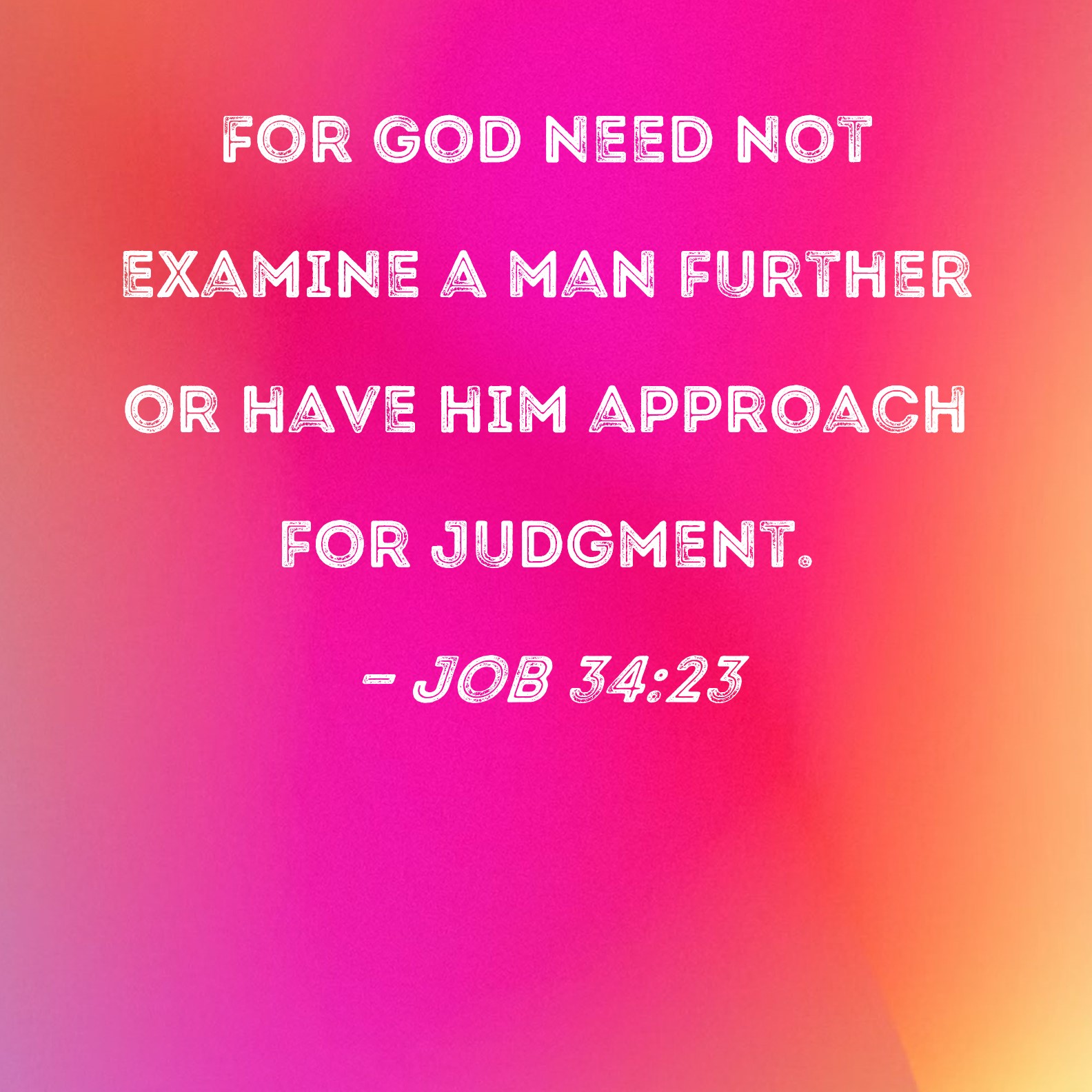 Job 34:23 For God need not examine a man further or have him approach for judgment.