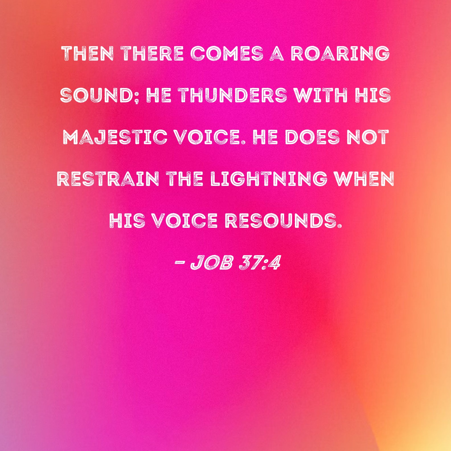 Job 37:4 Then there comes a roaring sound; He thunders with His majestic voice. He does not restrain the lightning when His voice resounds.