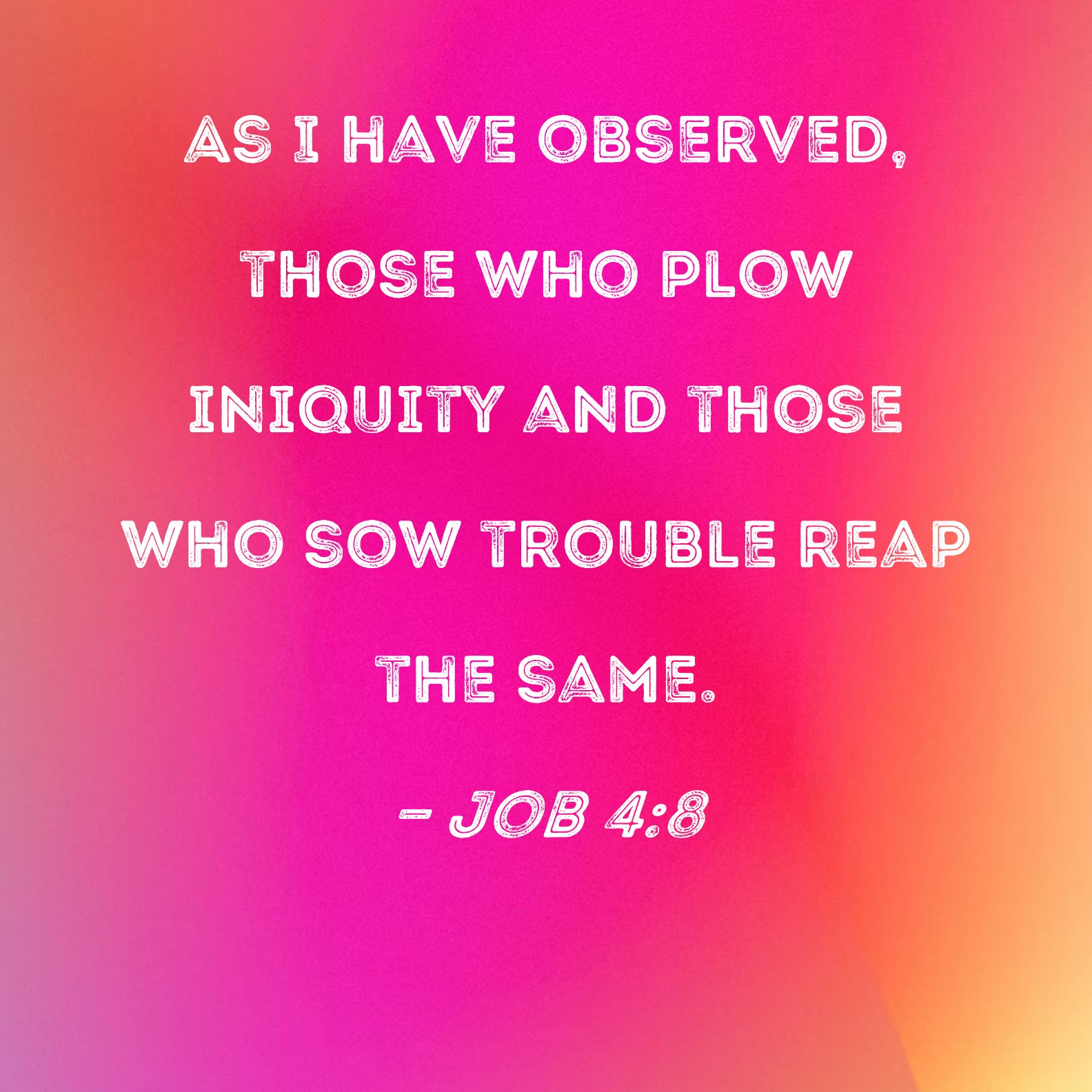 Job 4:8 As I have observed, those who plow iniquity and those who sow trouble reap the same.