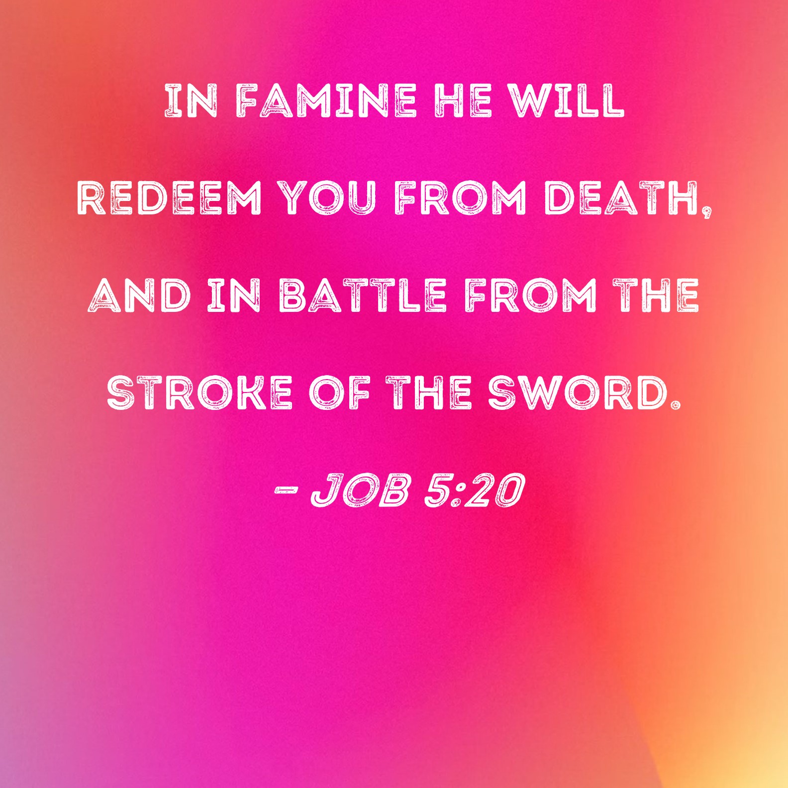 Job 5:20 In famine He will redeem you from death, and in battle from the stroke of the sword.