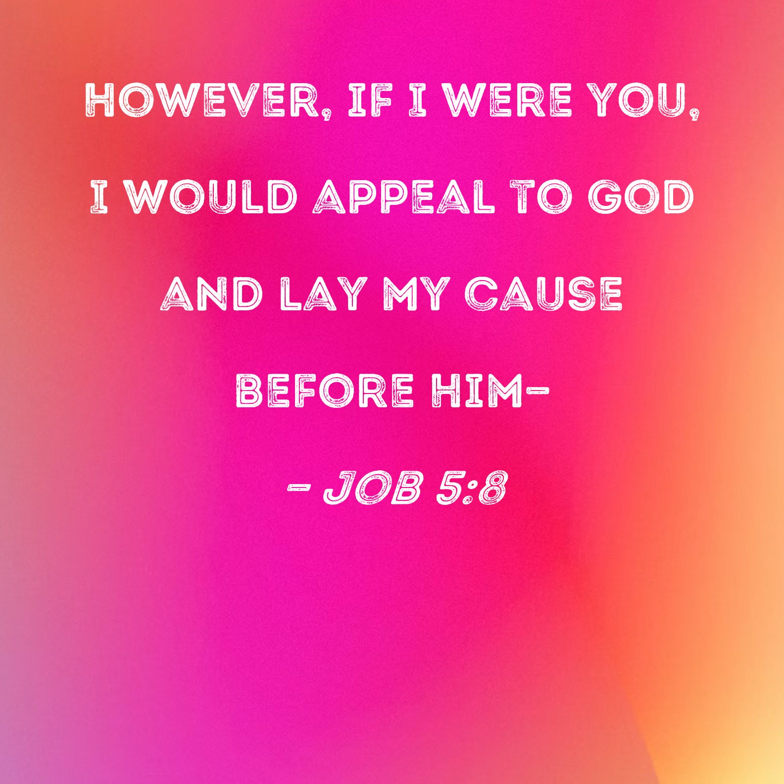 Job 5:8 However, if I were you, I would appeal to God and lay my cause before Him--