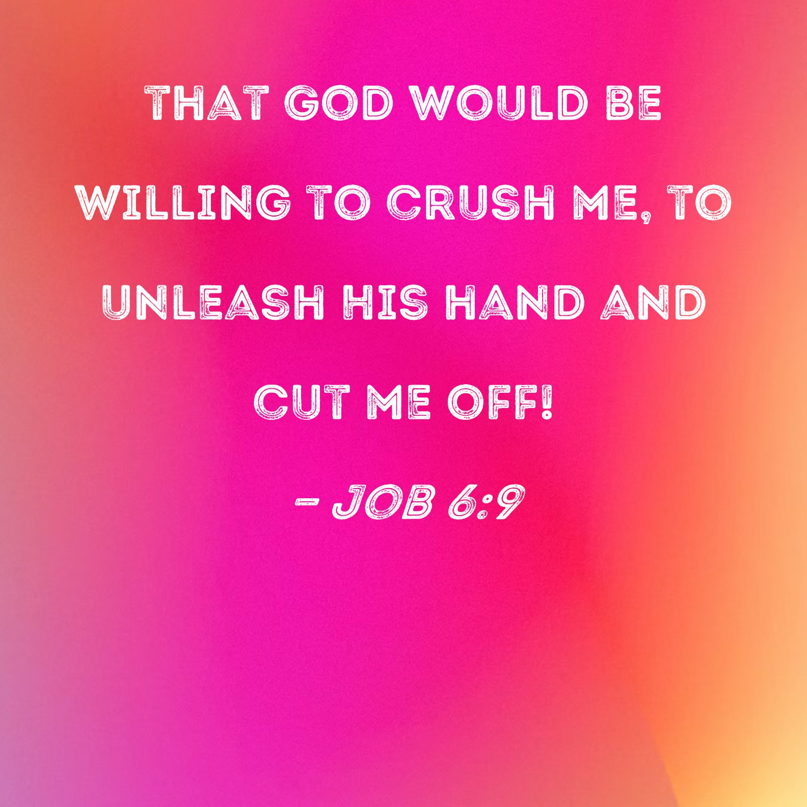 Job 6:9 that God would be willing to crush me, to unleash His hand and cut me off!