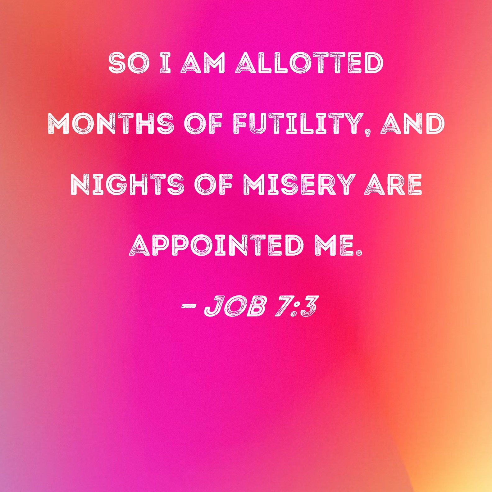 Job 7:3 So I am allotted months of futility, and nights of misery are appointed me.