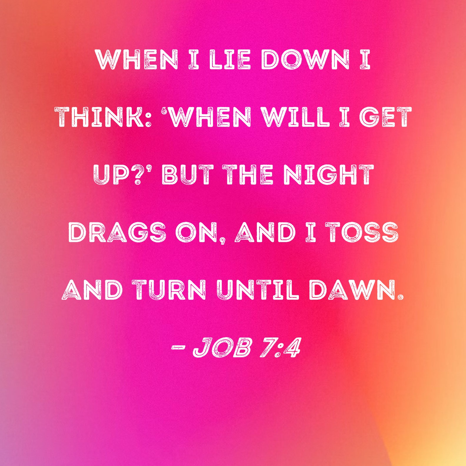 Job 7:4 When I lie down I think: 'When will I get up?' But the night drags on, and I toss and turn until dawn.