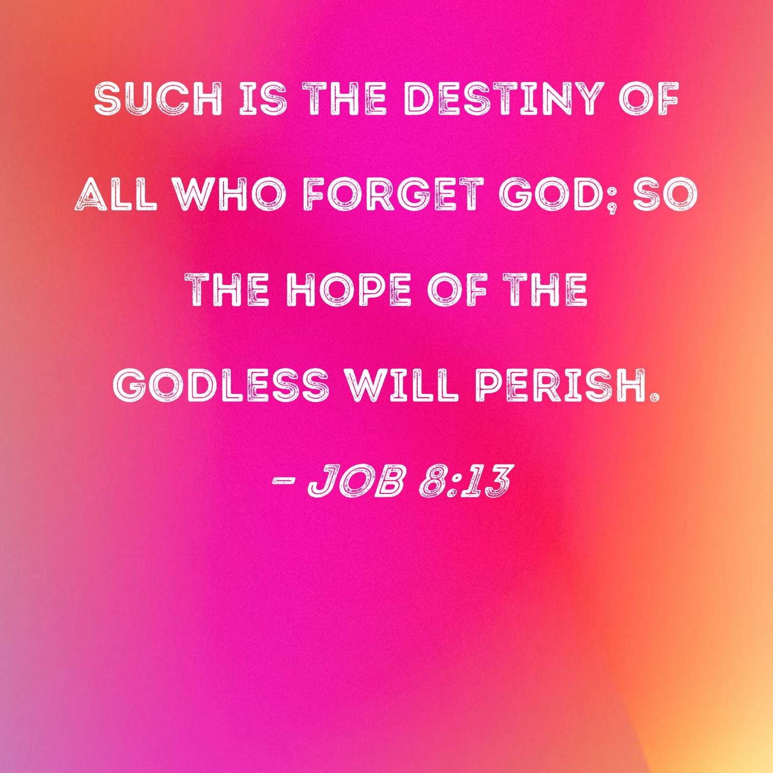 Job 8:13 Such is the destiny of all who forget God; so the hope of the godless will perish.