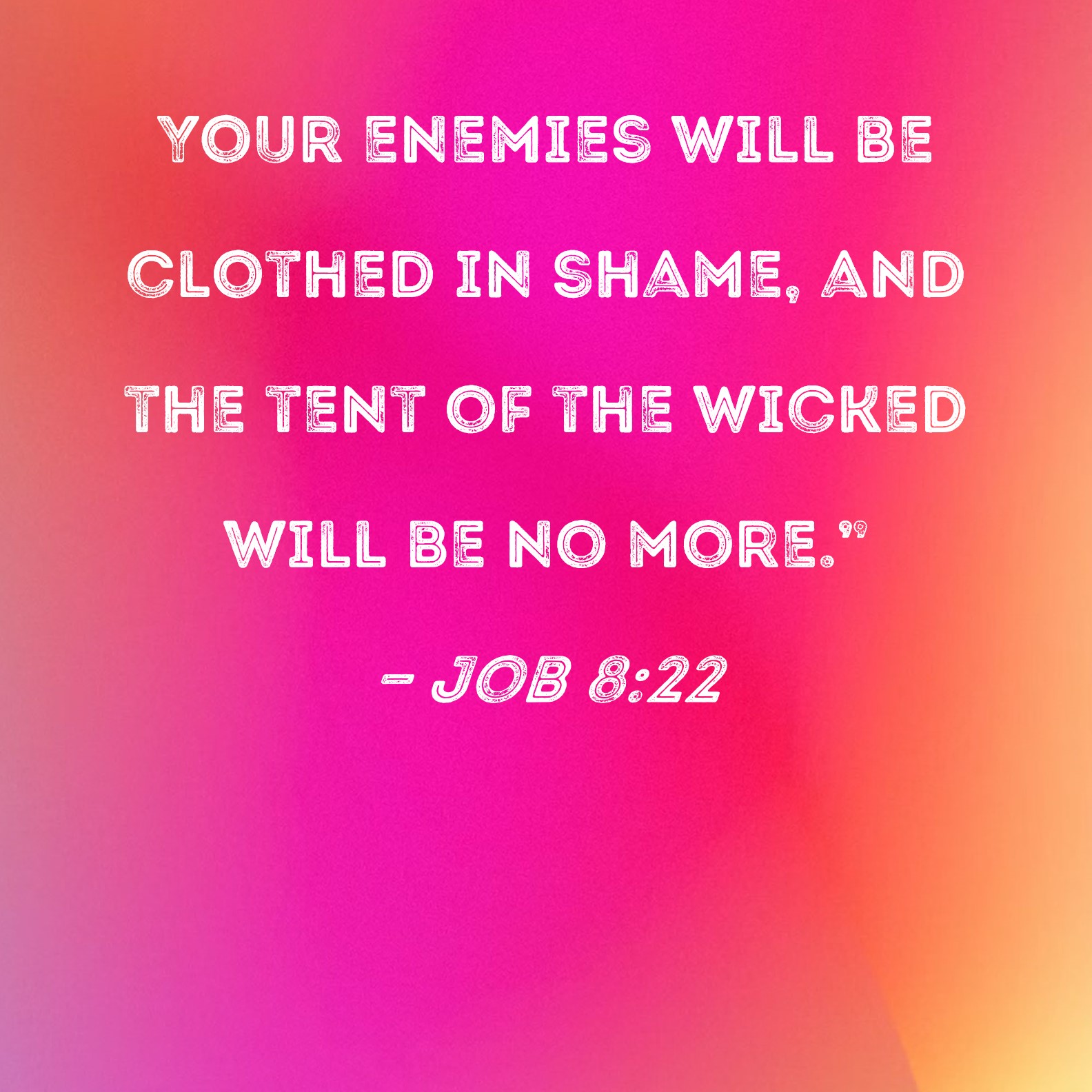 Job 8:22 Your enemies will be clothed in shame, and the tent of the wicked will be no more."