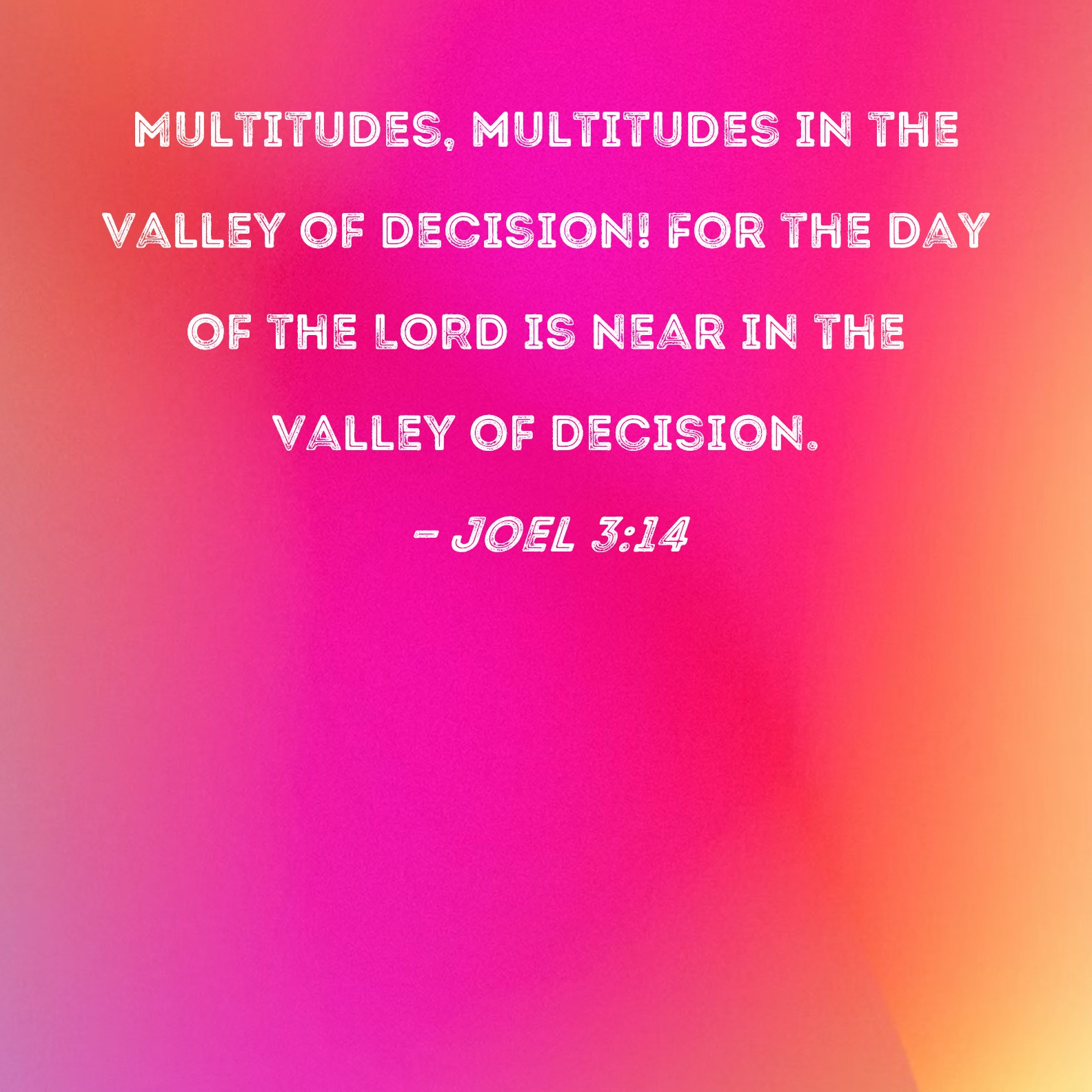 Joel 3:14 Multitudes, multitudes in the valley of decision! For the Day of the LORD is near in the valley of decision.