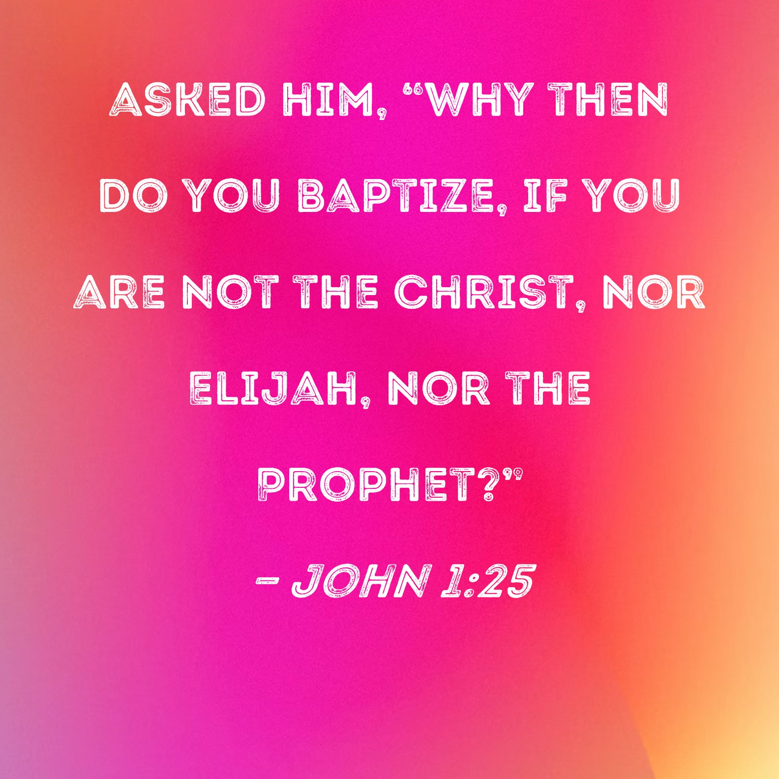 John 1:25 asked him, "Why then do you baptize, if you are not the Christ, nor Elijah, nor the Prophet?"