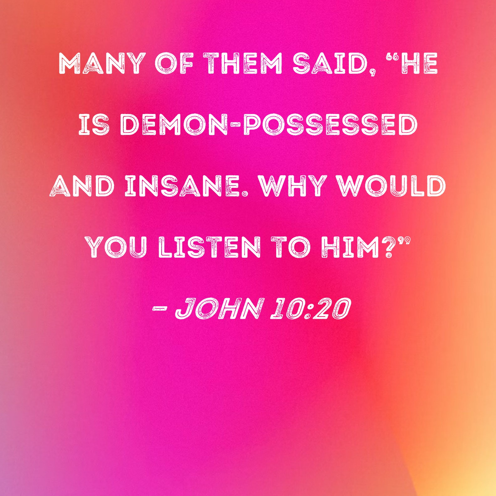 John 10:20 Many of them said, "He is demon-possessed and insane. Why would you listen to Him?"