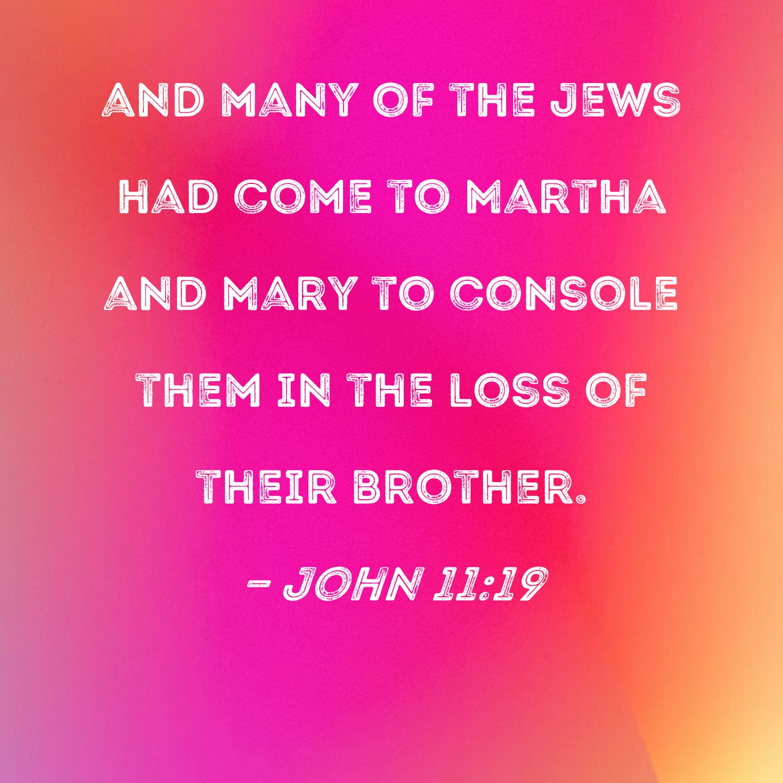 John 11:19 and many of the Jews had come to Martha and Mary to console them in the loss of their brother.