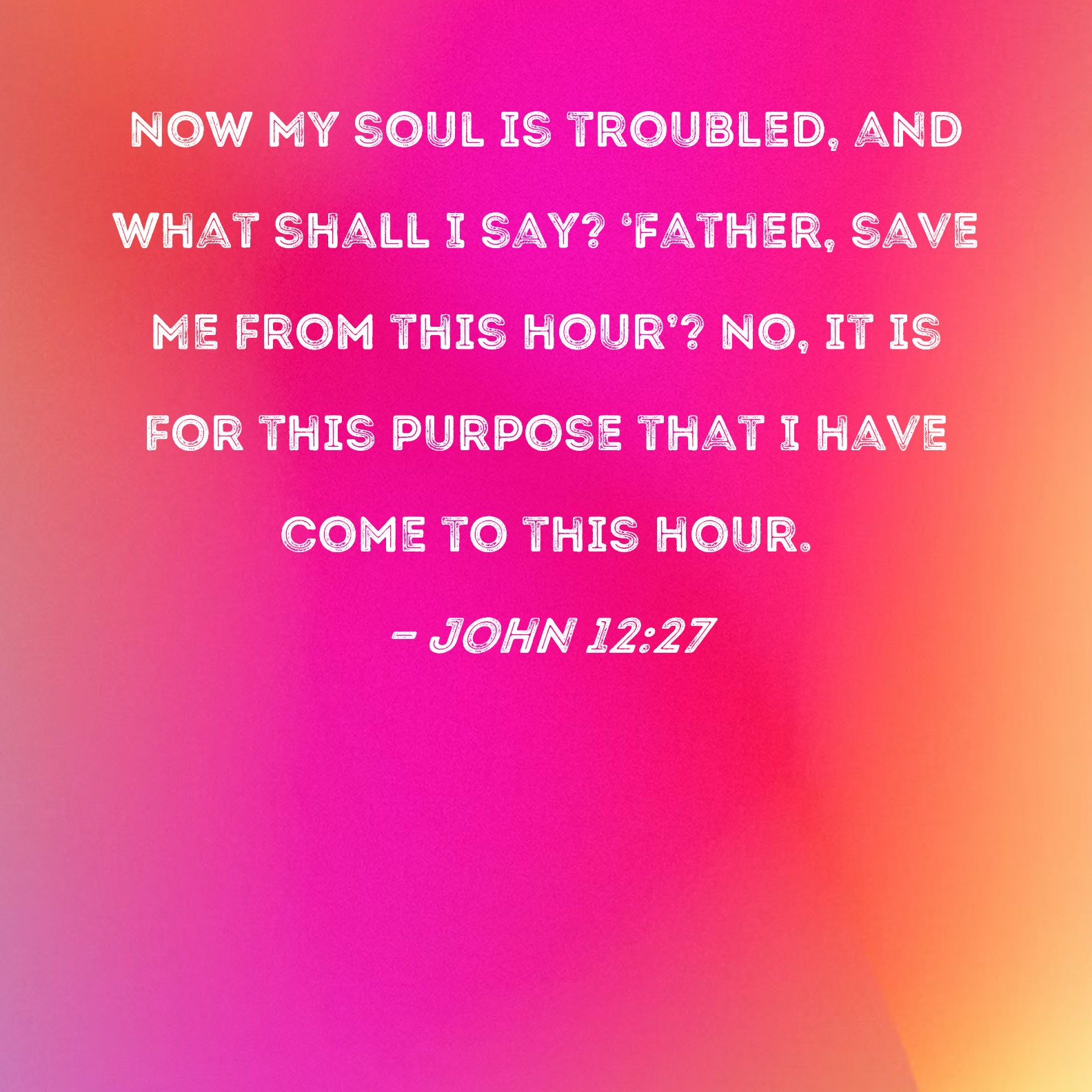 John 12:27 Now My soul is troubled, and what shall I say? 'Father, save Me from this hour'? No, it is for this purpose that I have come to this hour.