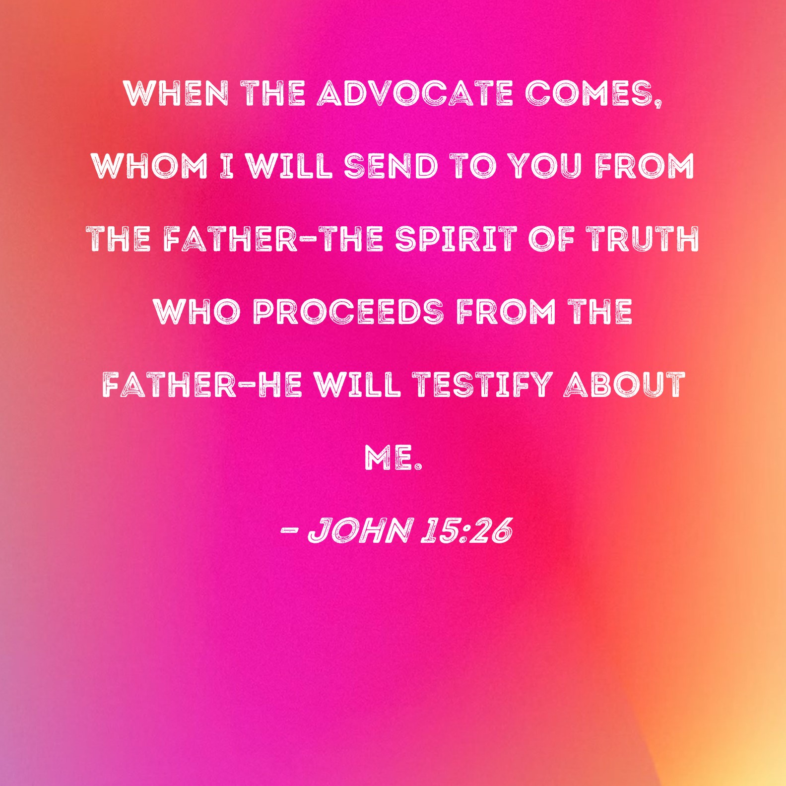 John 15:26 When the Advocate comes, whom I will send to you from the Father--the Spirit of truth who proceeds from the Father--He will testify about Me.