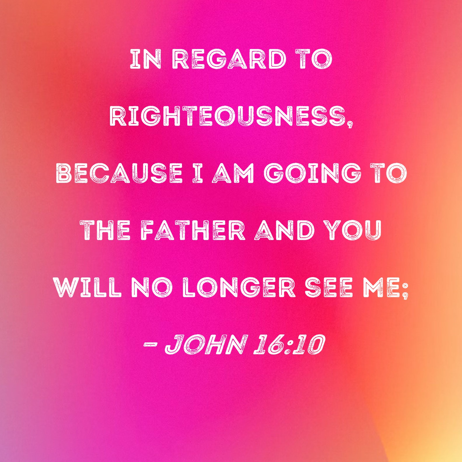 John 16:10 in regard to righteousness, because I am going to the Father and you will no longer see Me;