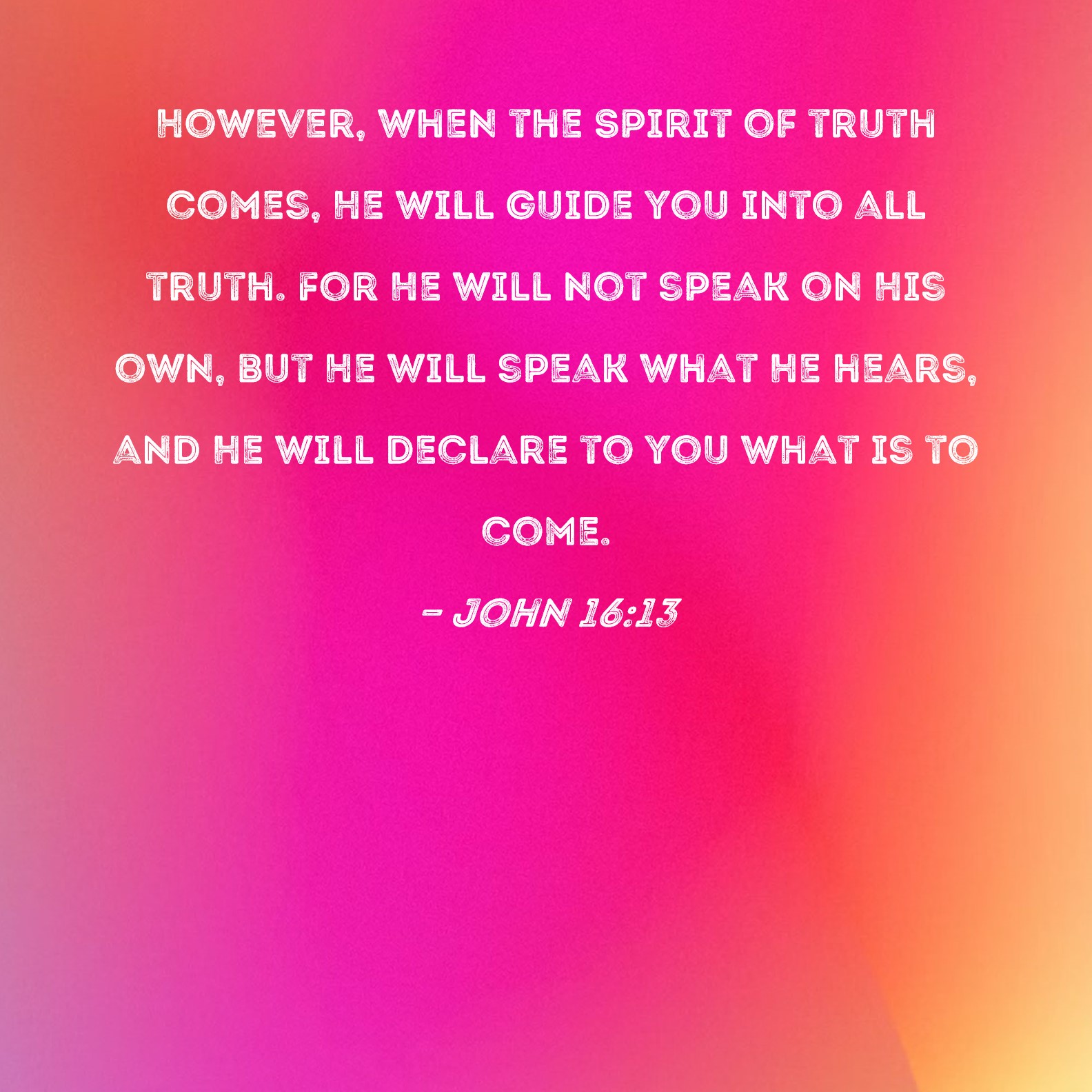 John 16:13 However, when the Spirit of truth comes, He will guide you into all truth. For He will not speak on His own, but He will speak what He hears, and He will declare to you what is to come.